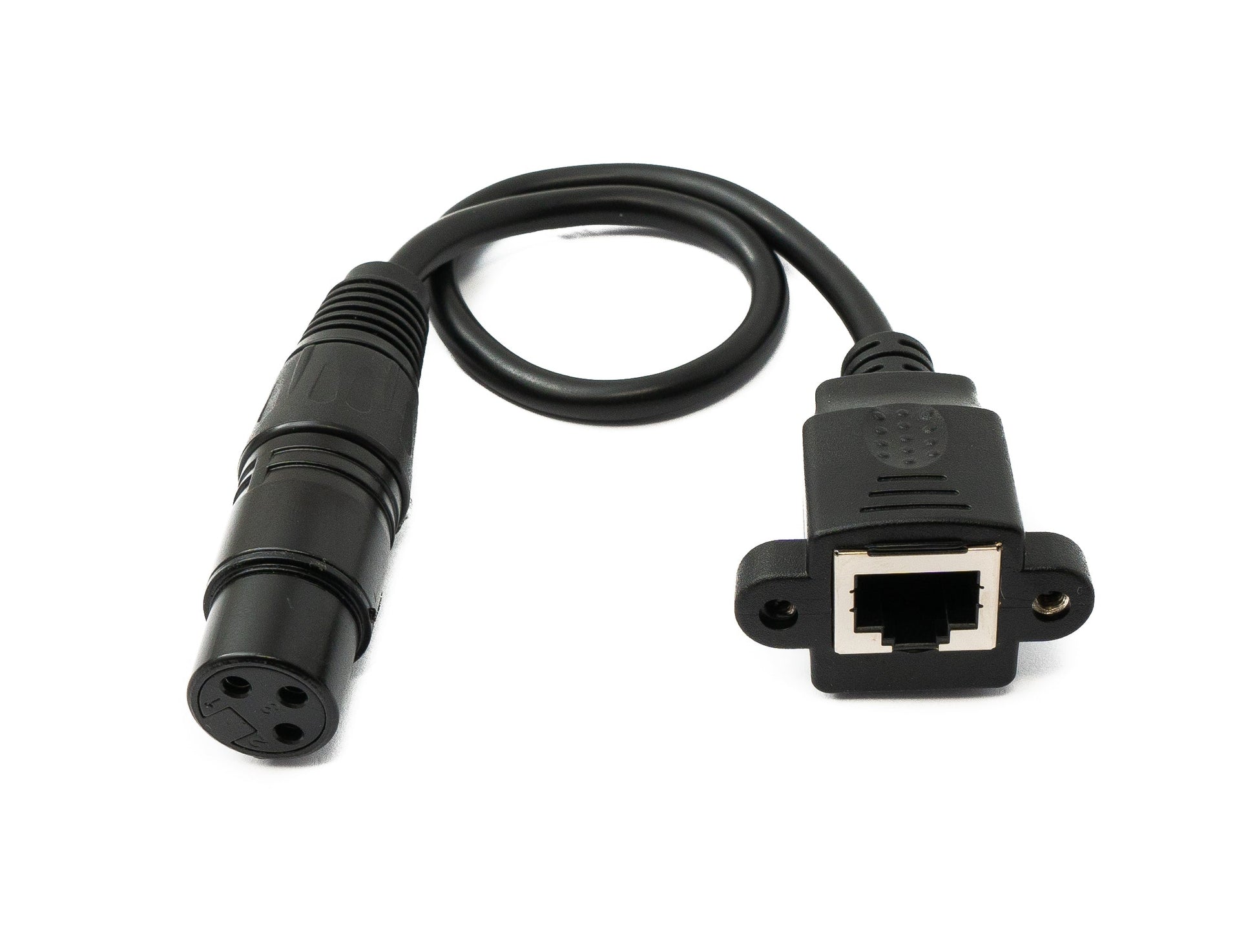 - RJ45 socket (8P8C) to XLR 3 pin socket