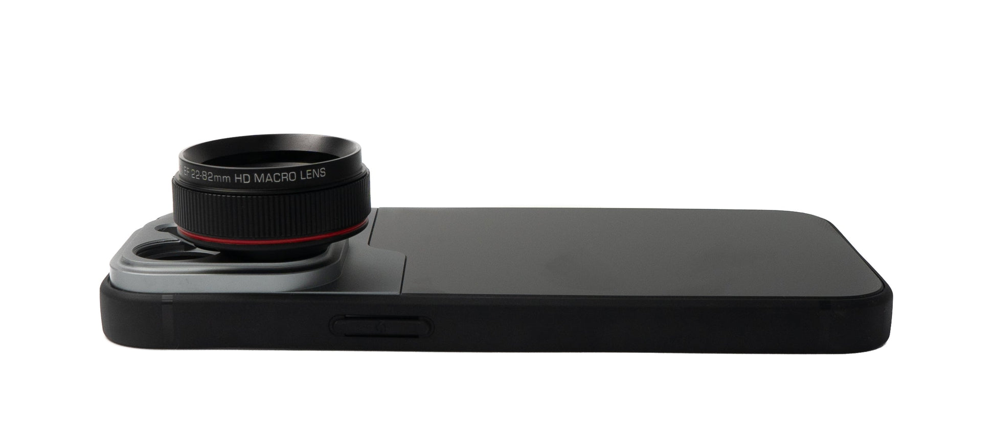Expand your photographic possibilities with the SYSTEM-S Macro Lens for the iPhone 13 Pro. This adjustable macro lens offers variable magnification from 1.1x to 2.8x, enabling detailed close-up shots with high precision.