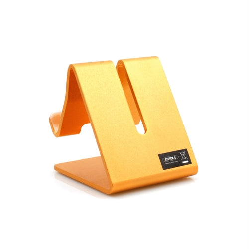 System-S Metall Halter Ständer Stand in Gold Farbe für Handy Smartphone E-Book Reader Tablet PC