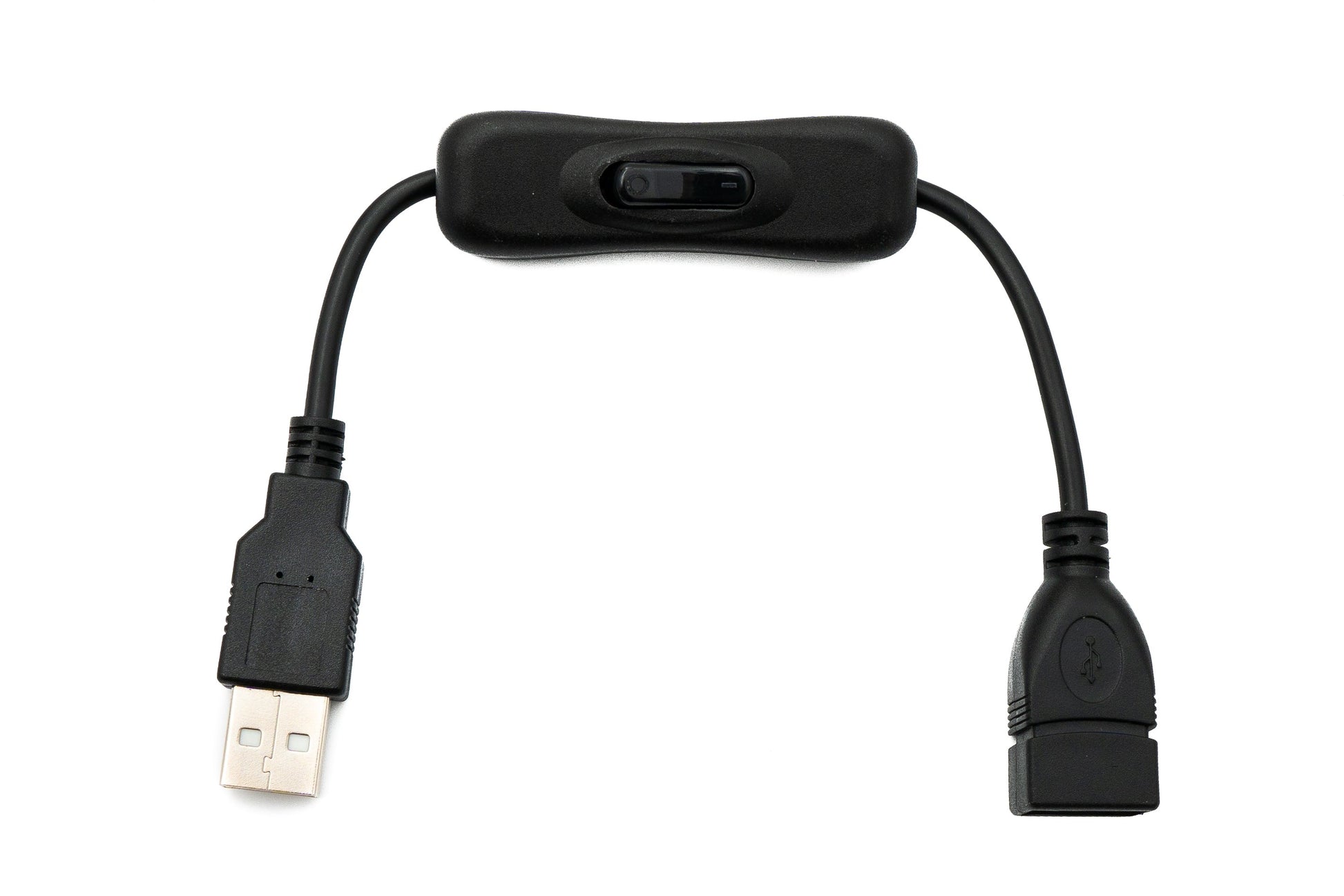 SYSTEM-S USB 2.0 cable 20 cm Type A male to female switch in black