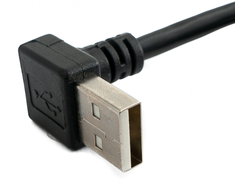 The SYSTEM-S USB 2.0 cable in black offers a high-speed transfer rate of 480 Mbps. The up-angled design of both connectors ensures flexibility and ease of use.