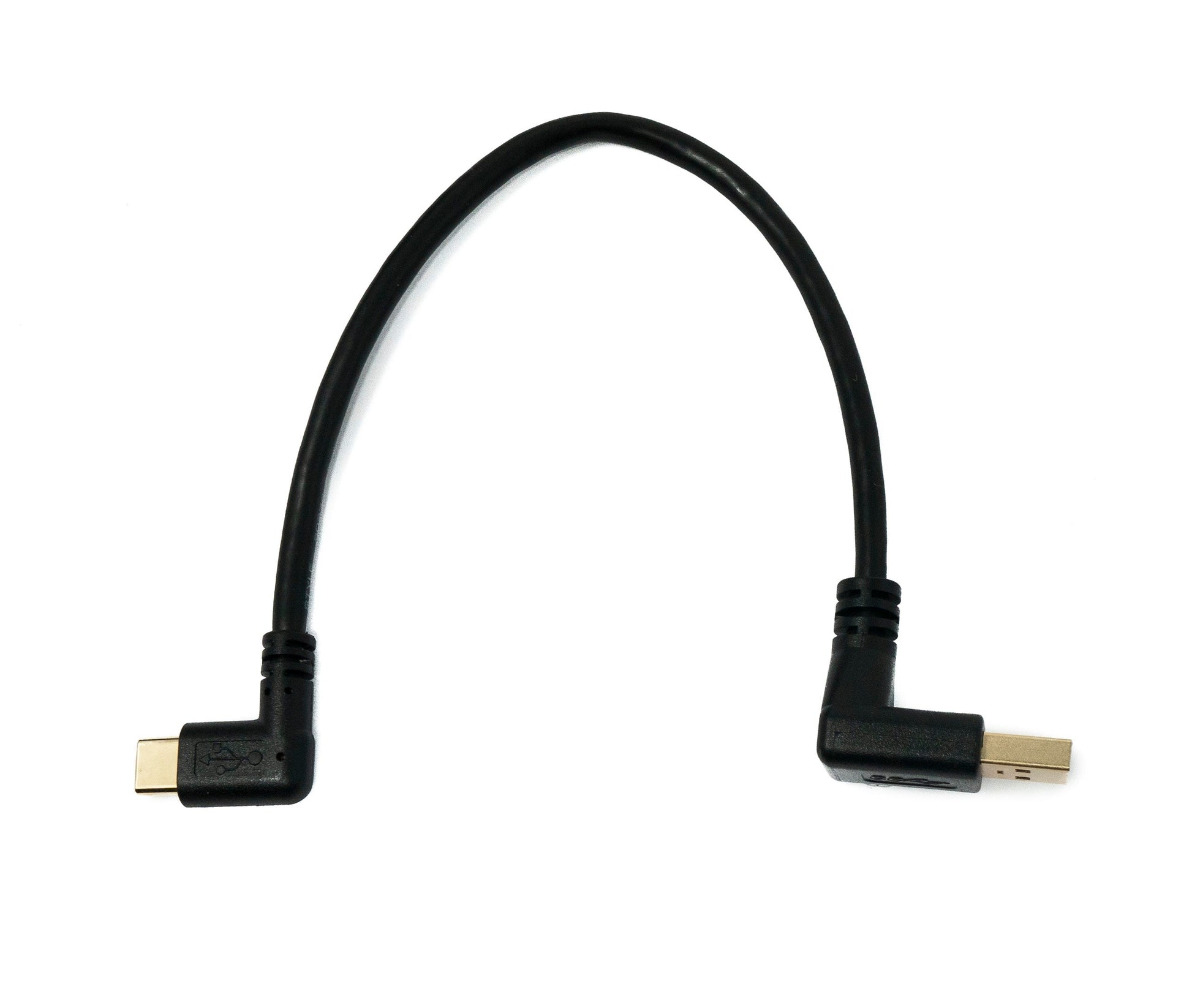 Compact angled connectors: USB-A down-angled, USB-C left- or right-angled
