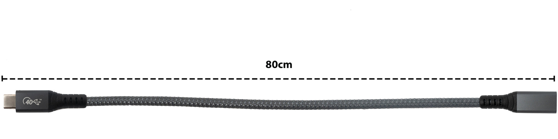 SYSTEM-S USB4 USB cable 80 cm Type C male to female 40 Gbit/s USB 4.0 braided in gray