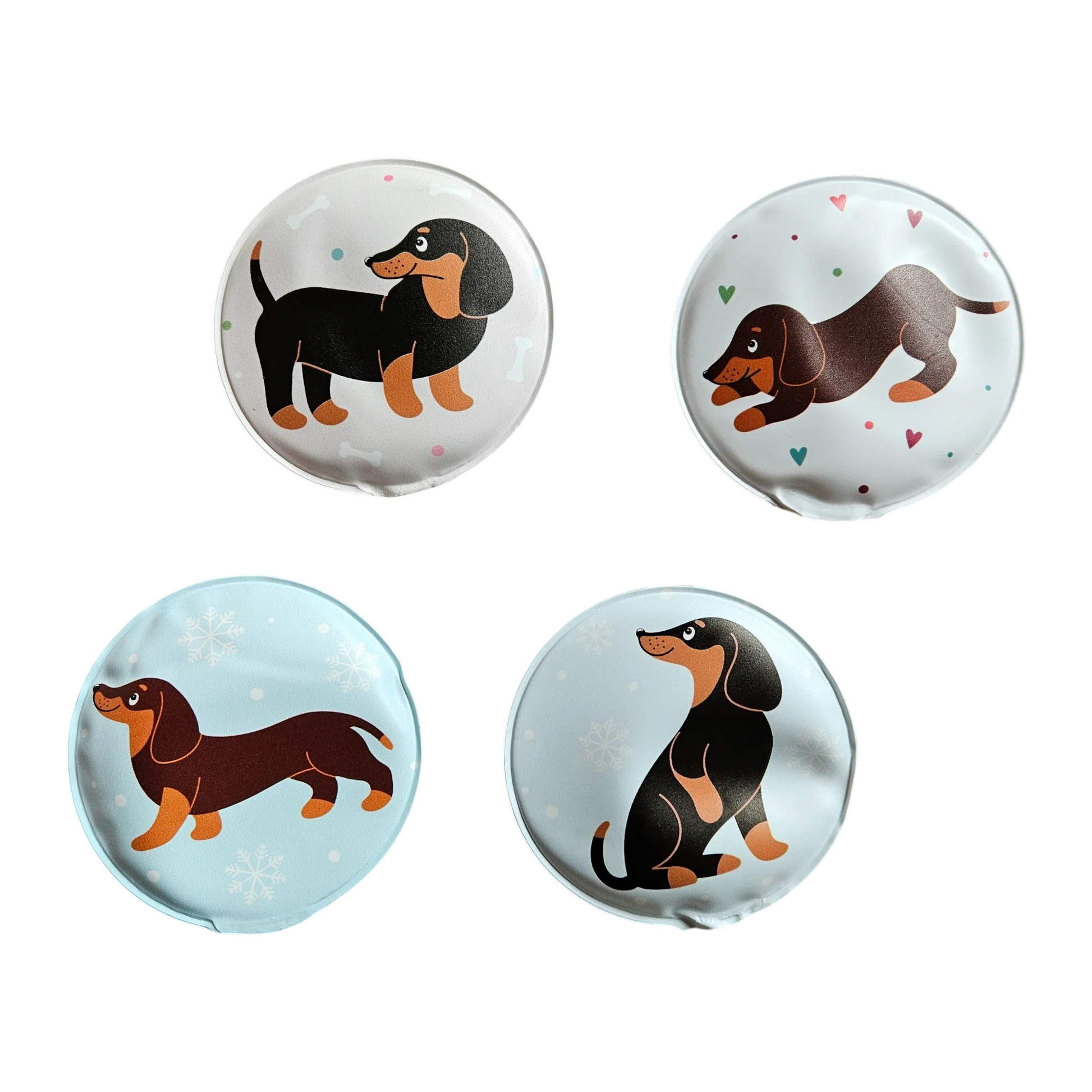 Taschenwärmer Handwärmer Hund Dackel 4er Set wiederverwendbar Wärmekissen