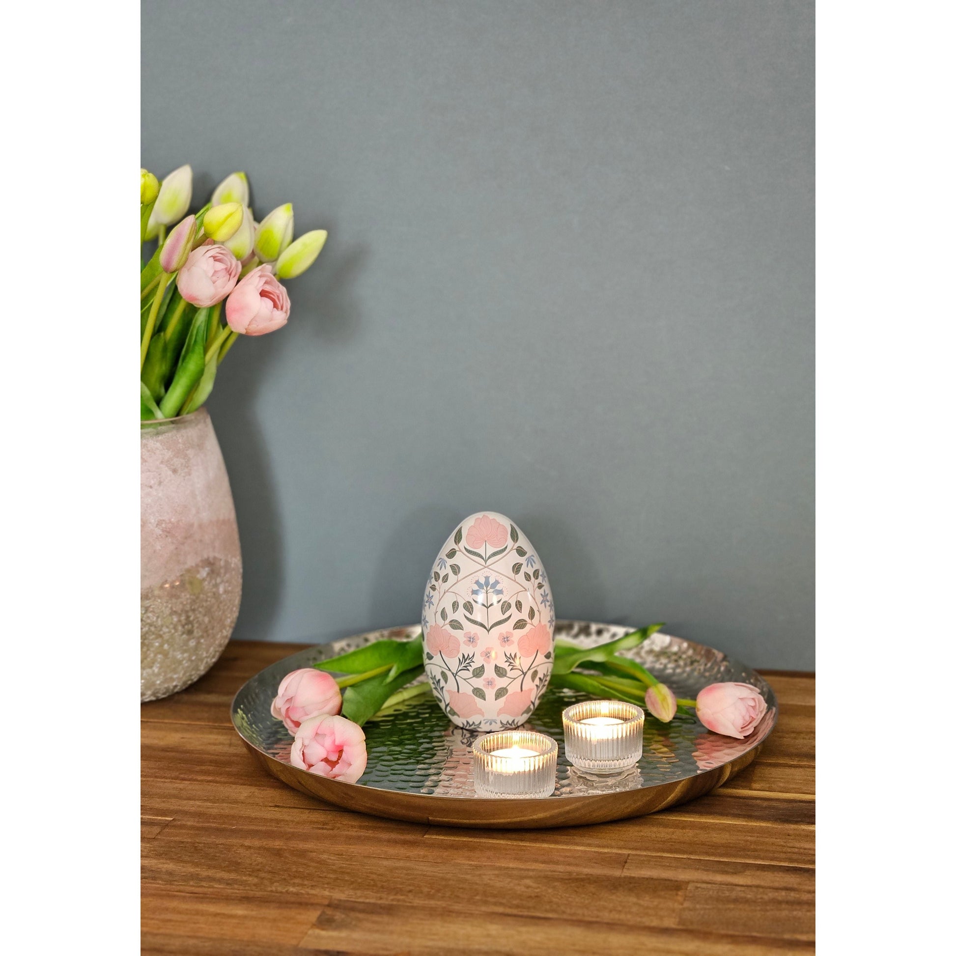 - Zeitloses Design: Die runde Form und die silberne Hammerschlag-Optik passen zu modernen wie klassischen Einrichtungsstilen