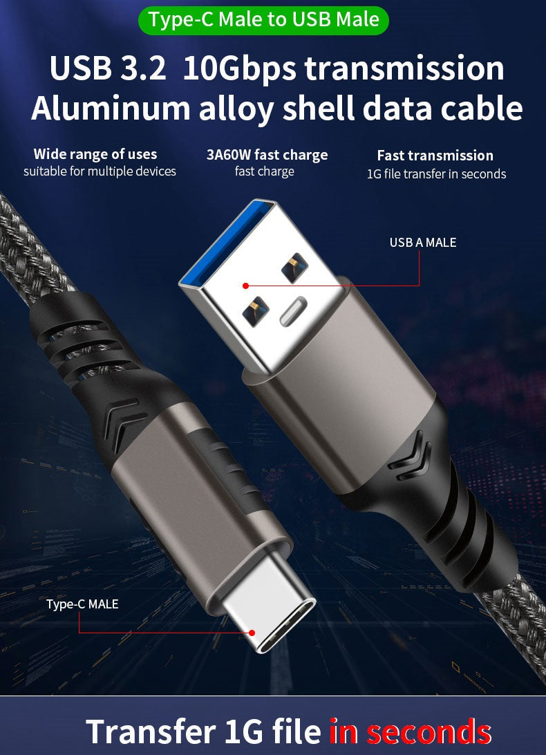Typ-C Ladekabel USB-C USB-A Kabel 10Gbps 3A Nylon USB 3.2 Quick Charge QC 60W
