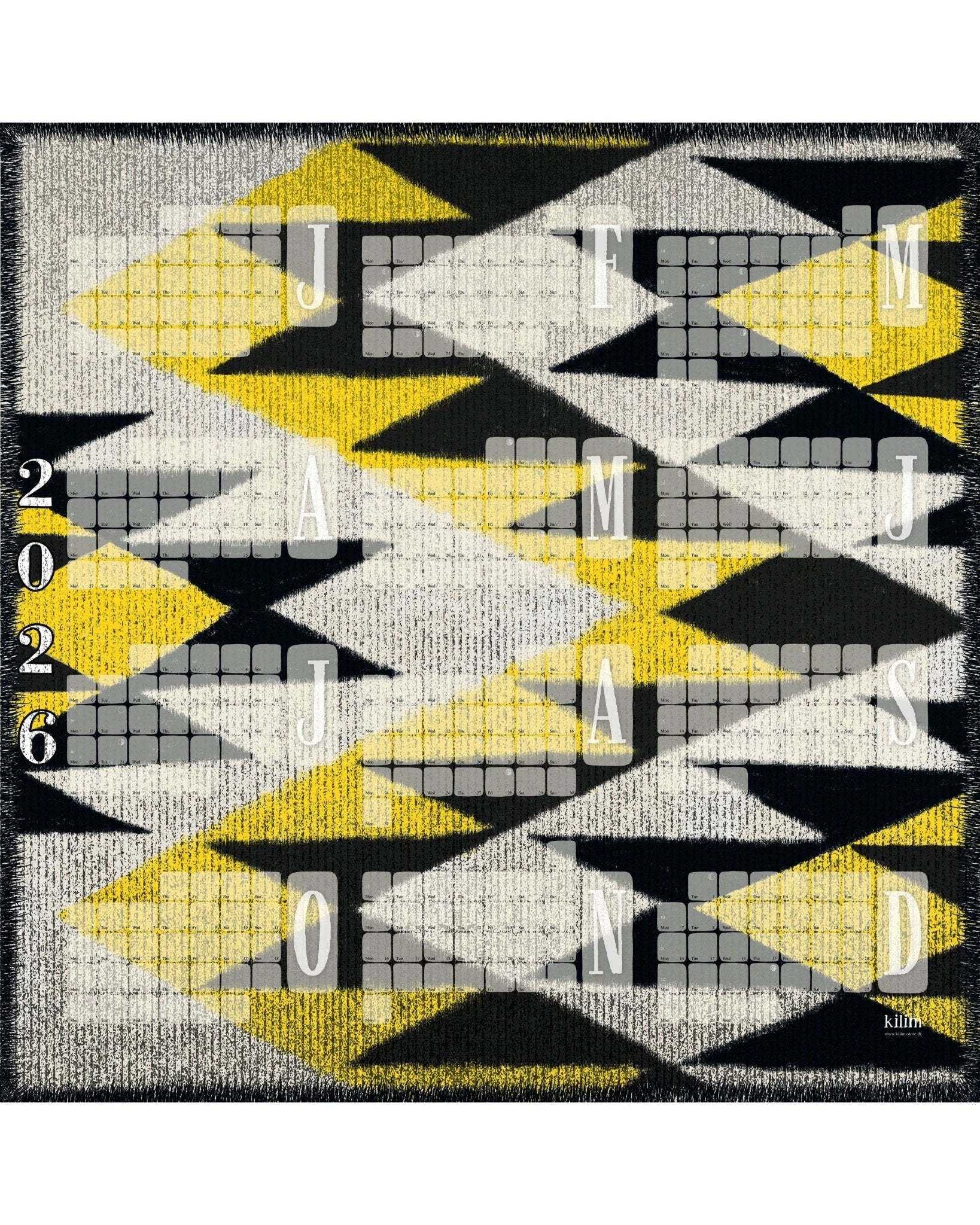 Introducing the Tiger Annual Planner! Not for wimps, snoozy types, or harmony freaks. This wall calendar with its striking design will liven up your walls: strong contrasts and bold zigzags provide plenty of power and energy for your annual planning. Shown here in white, yellow, and black with a coarse wool texture.
