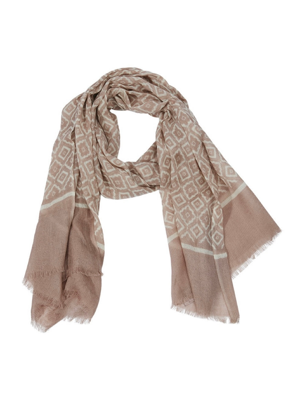Edler Modeschal mit einem dezenten Grafikmuster aus einer hochwertigen Wollqualität. Besonders softes und leichtes Strickgewebe mit kurzen Fransen am Abschluss. Er lässt sich ideal kombinieren.