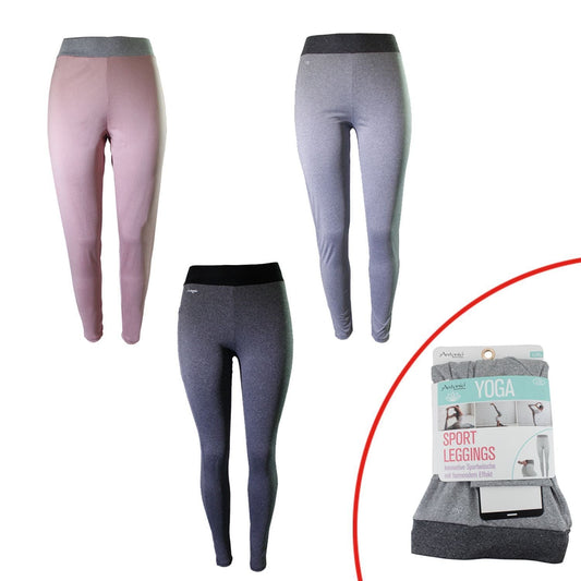 Damen Sport Leggings » melierte Yogahose mit praktischer Tasche » Yogaleggins Formender Effekt