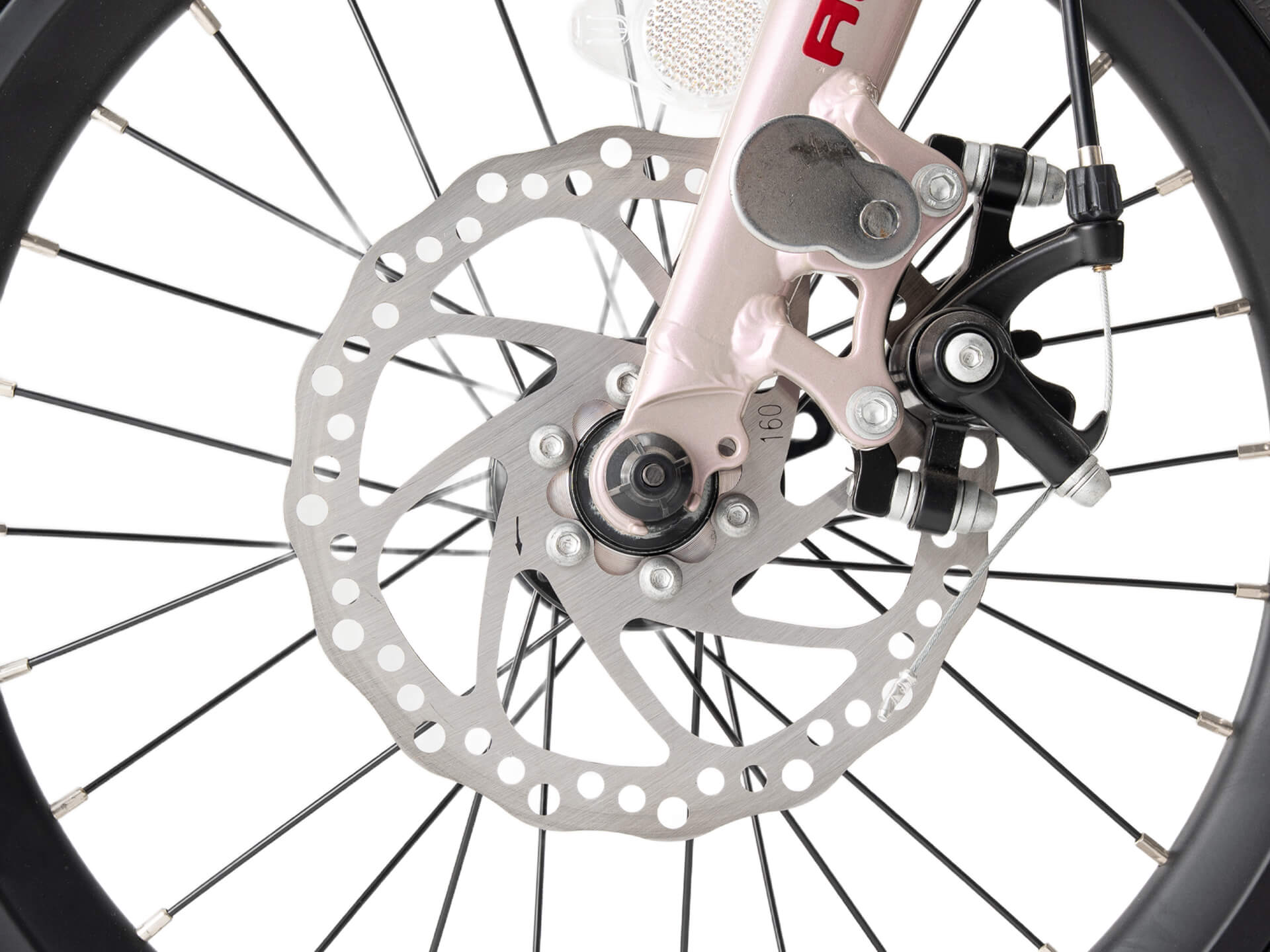 Þetta hjól er með 16 tommu samanbrjótanlegum ramma úr áli sem hentar fyrir geimferðir og er mun léttari en sambærilegir stálrammar: tilvalið fyrir burð með annarri hendi. Nákvæmar suðusamsetningar tryggja mikla stífleika rammans, en hönnun hjörunnar veitir langvarandi endingu. Tilvalið fyrir hagnýta ferðalanga.