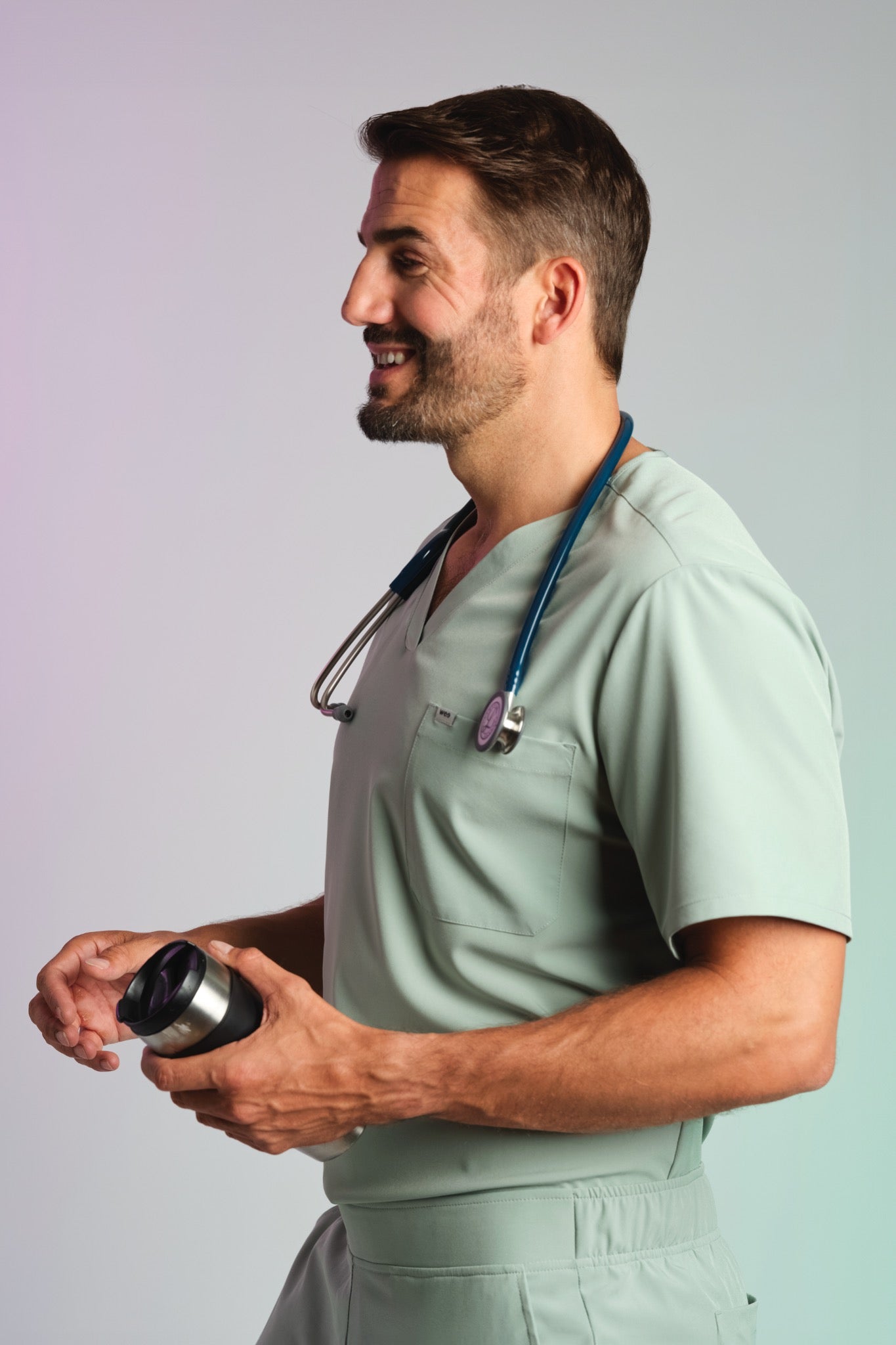 VÁ! Þetta er flottur tunika! Frábært útlit! Mjög þægilegt! Frábært verð! Við kynnum fyrir ykkur karlmannstunika okkar „Pete“ með klassískum V-hálsmáli úr Active línunni okkar! Gert að því nauðsynlegasta svo þú lítir sem best út. Auk þess er þetta þægilega létt WEPEX/ Active Stretch efni með „silkiáferð“. Framleitt á sjálfbæran hátt og má þvo við 60 gráður. Í stuttu máli: Hin fullkomna valkostur ef þú vilt að kjóllinn þinn sé ekki aðeins nútímalegur heldur einnig stílhreinn. Einfaldur og óflókinn!