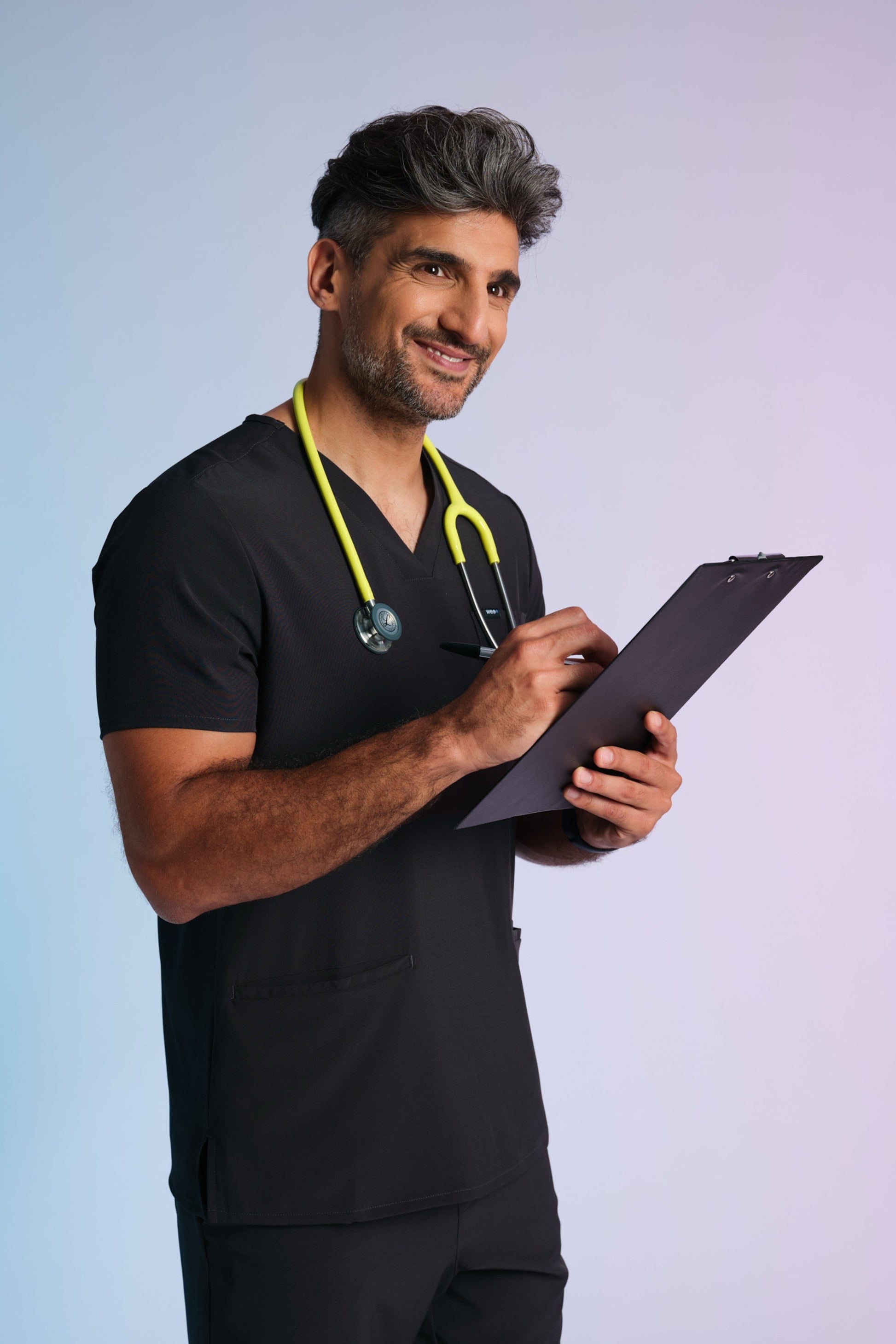 WOW! Was für ein Kasack! Super Look! Super Komfort! Super Preis! Dürfen wir vorstellen? Unser Herren Kasack "Pete" mit klassischem V-Ausschnitt aus unserer Active Kollektion! Auf’s Wesentliche reduziert, damit du maximal gut aussiehst. Dazu der angenehm leichte WEPEX/Active Stretch-Stoff mit „Silk-Touch“. Nachhaltig produziert und waschbar bei 60 Grad. Kurz: Die perfekte Wahl, wenn dein Kasack nicht nur modern, sondern auch stylisch sein soll. Ganz einfach & unkompliziert!