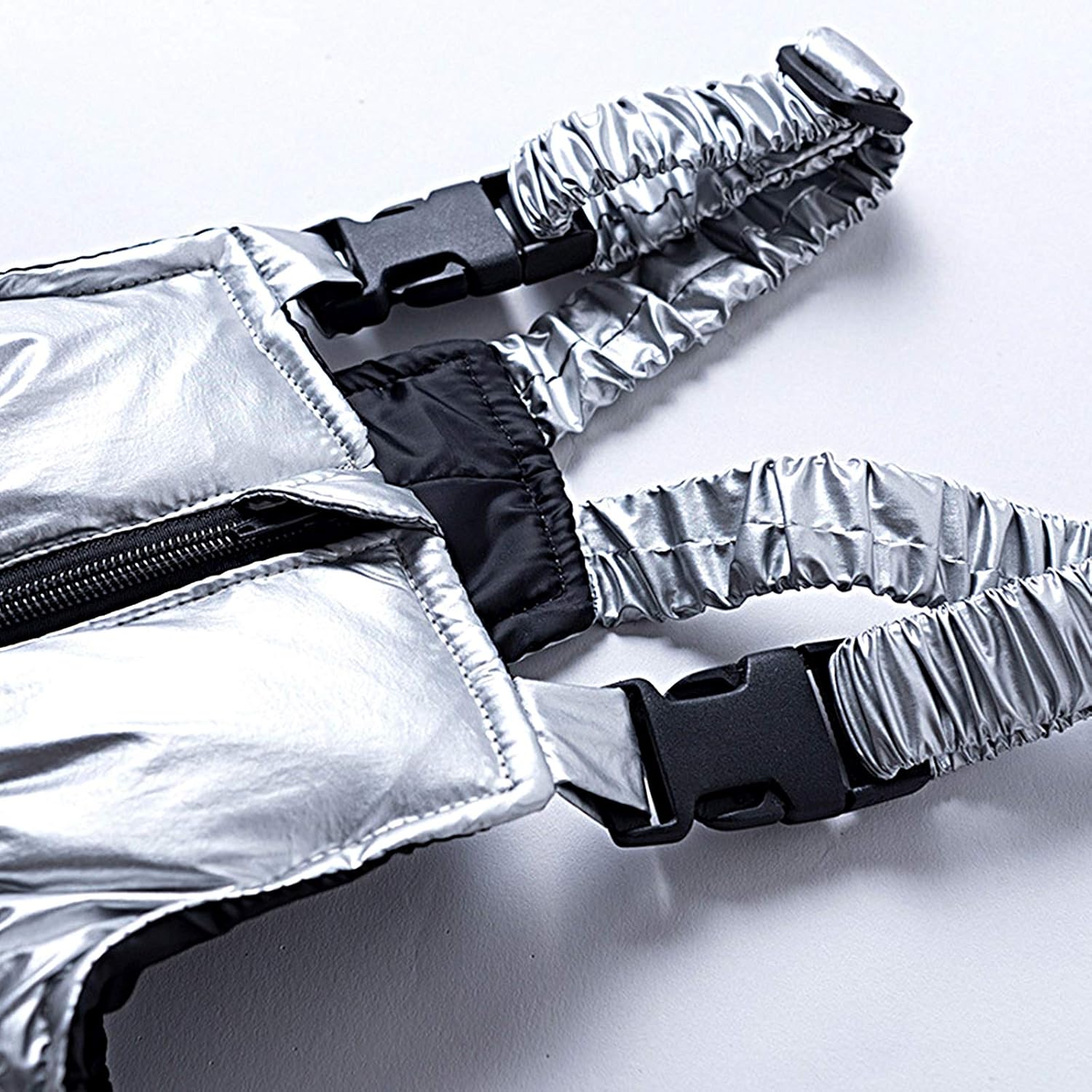 - Snjóbuxur, stillanlegar axlarólar með hraðopnunarspennum, teygjanlegt mitti og fótleggsop, rennilás að framan allan sólarhringinn, auðvelt að setja á sig bleyjur og skipta um þær.