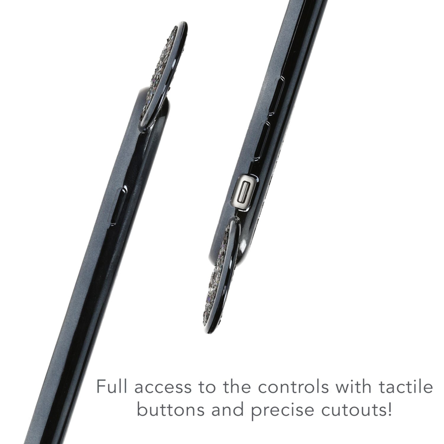 NALIA símahulstur sem hentar iPhone 7, glitrandi þunnt bakhulstur með músareyrum, glitrandi sílikonhulstur, þunnt verndarhulstur, hulstur með steinum, snjallsímastuðari