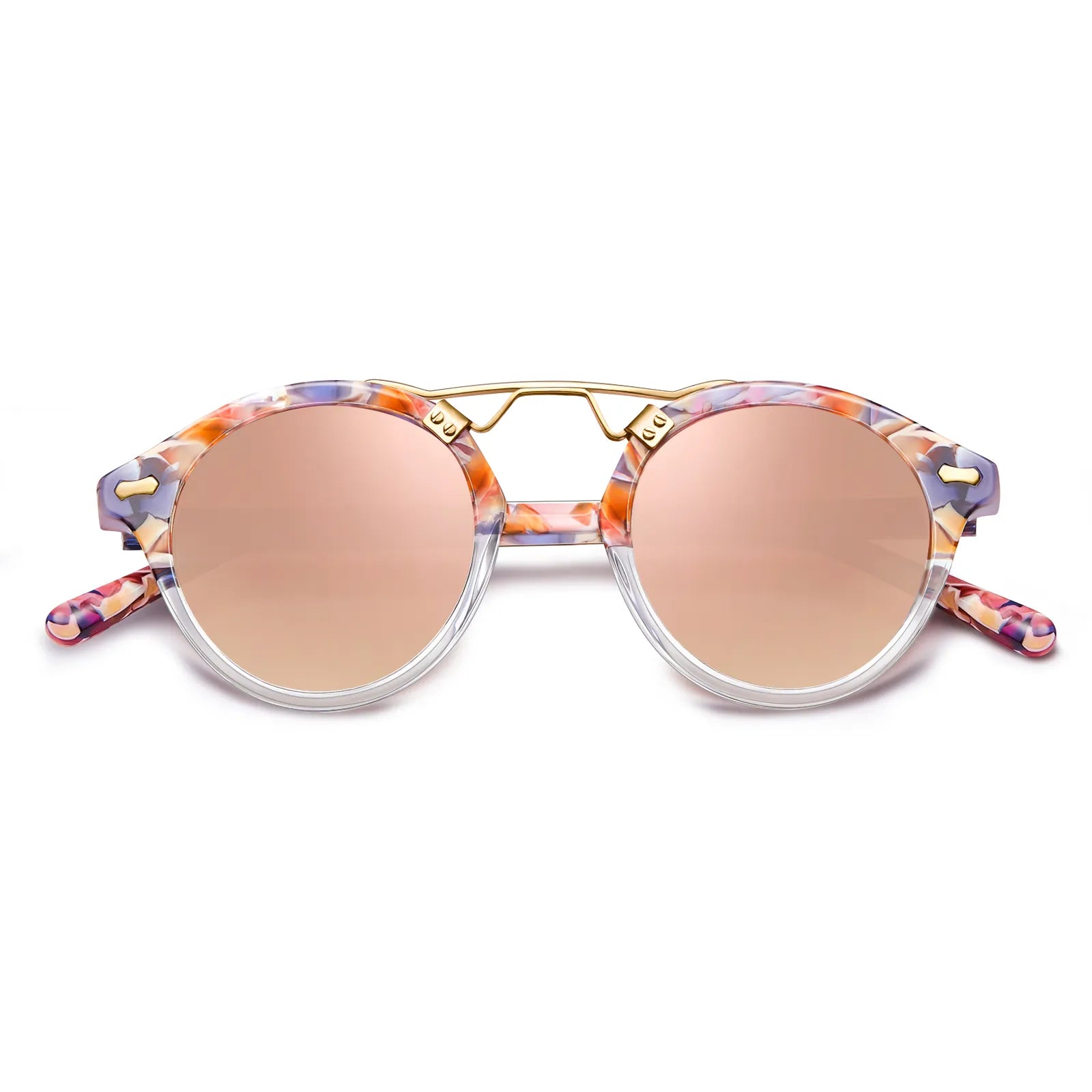 - Bleik sólgleraugu fyrir konur - Við undirstrikum framsækna umgjörð með einstakri samsetningu nikkelfrírrar málmbrúnar. Bleiku spegilsólgleraugun fyrir konur gefa frá sér fágaða og látlausa glæsileika sem passar fullkomlega við sporöskjulaga, hjartalaga, ferkantaða, rétthyrnda, þríhyrningslaga og demantlaga andlit.