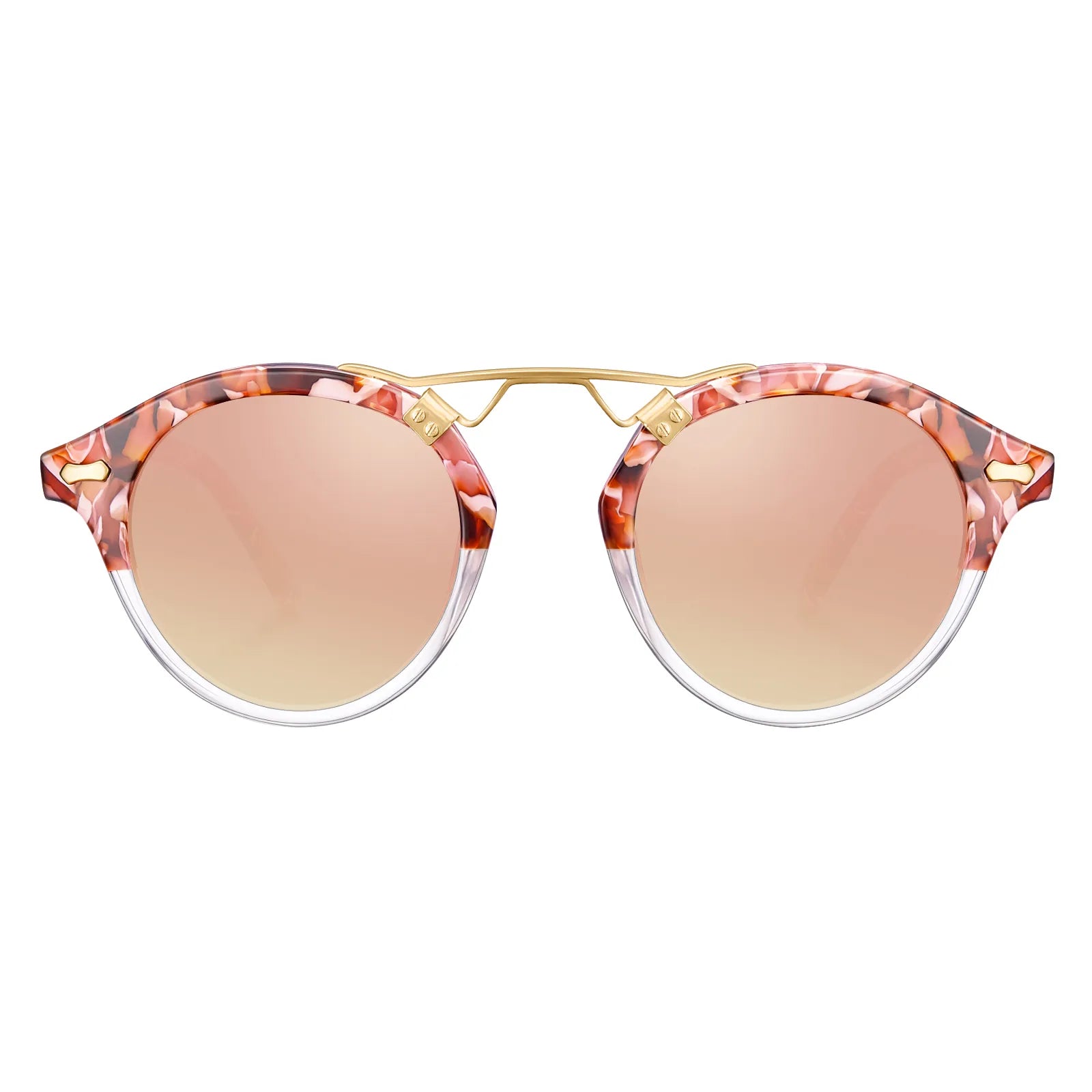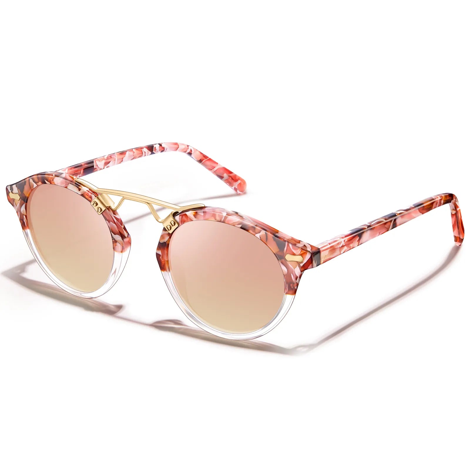 - Bleik sólgleraugu fyrir konur - Við undirstrikum framsækna umgjörð með einstakri samsetningu nikkellausrar málmbrúnar. Heillandi bleiku spegilsólgleraugun fyrir konur gefa frá sér daufa en samt heillandi glæsileika sem hentar fullkomlega sporöskjulaga, hjartalaga, ferkantaða, rétthyrnda, þríhyrningslaga og demantlaga andlit.