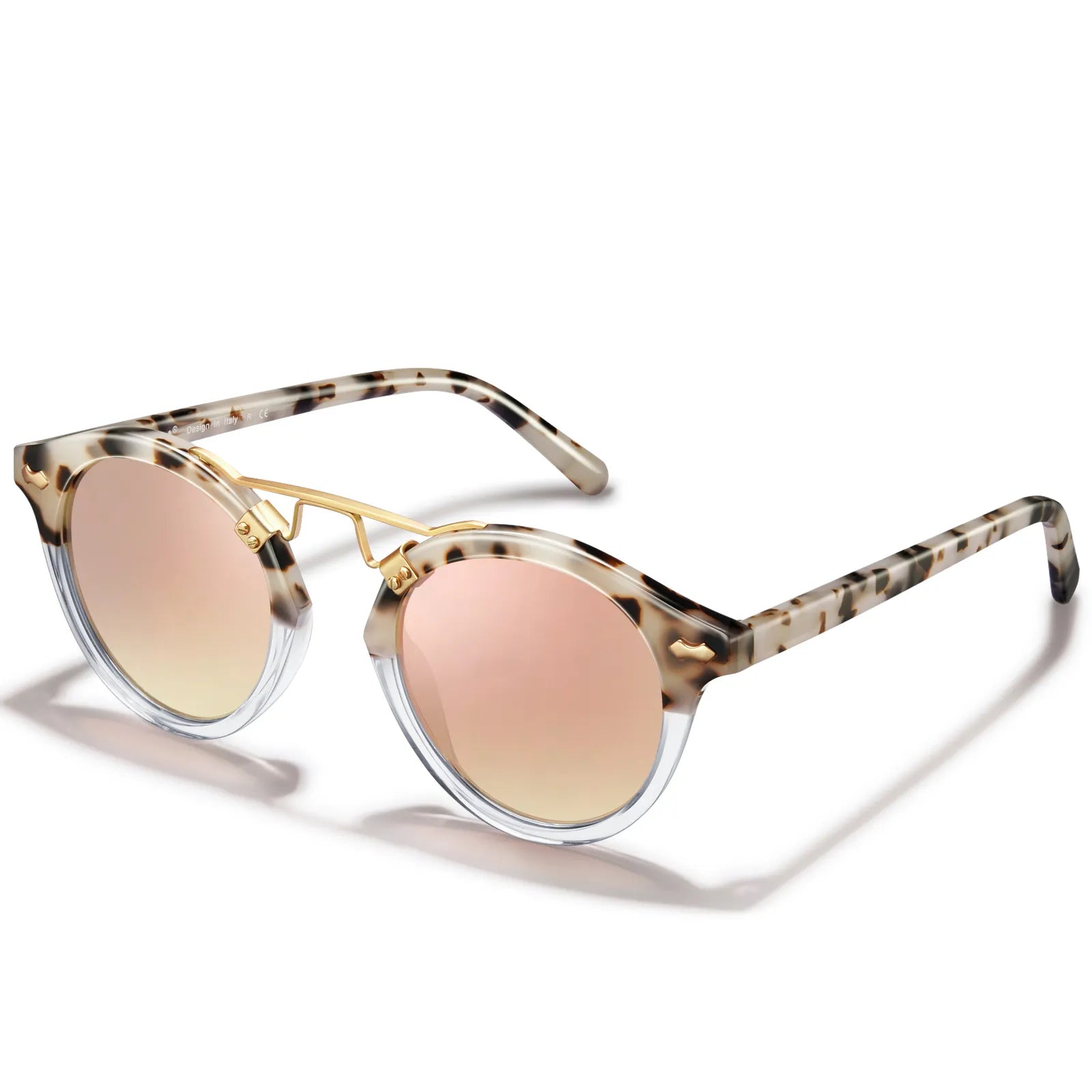 - Sólgleraugu með asetatgrind fyrir konur - Handpússað ítalskt asetatefni sem við notuðum er ofnæmisprófað og glansandi en ódýrt plast sem flagnar. Þannig eru skautaðar sólgleraugu fyrir konur ónæmar fyrir svita og snyrtivörutæringu og hafa mynstur sem dofna ekki til langtímanotkunar.