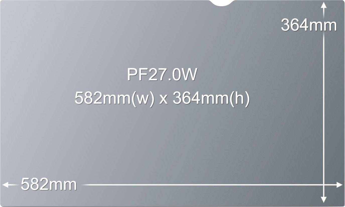 3M persónuverndarsía fyrir 27" breiðskjái (16:10). Hentar fyrir: Skjár, Tegund: Rammalaus persónuverndarsía fyrir skjá, Litur síu: Svartur. Eiginleikar skjásíu: Glampavörn, Studdar skjátegundir: LCD, Hlutfall: 16:10. Hámarks samhæfni við skjástærð: 27" (68,6 cm), Skjástærð (H x B): 364 x 582 mm. Breidd (Imperial): 20" (50,8 cm), Hæð (Tomma): 27" (68,6 cm). Breidd pakka: 508 mm, Dýpt pakka: 6 mm, Hæð pakka: 685 mm