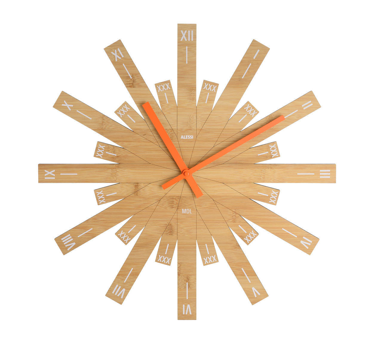 B-flokks Alessi Raggiante veggklukka, hliðræn klukka, hengiklukka, bambusviður, kringlótt