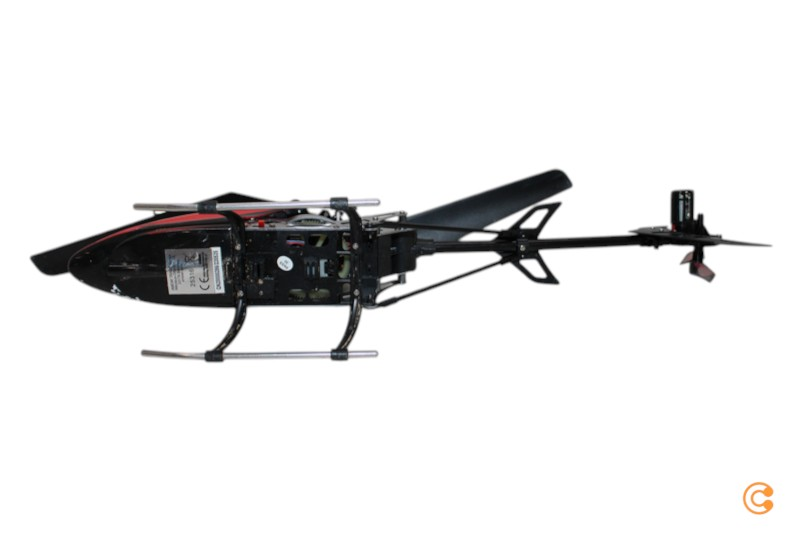 Vinsæla Buzzard þyrlan okkar, sem við kunnum vel úr sjónvarpi, er nú fáanleg í endurskoðaðri V2 útgáfu, sem gerir það enn auðveldara að byrja að fljúga þyrlum þökk sé nýjum eiginleikum. Þessi fallega, öfluga og hraðastýrða þyrla með einum snúningshluta er nú með nýjum, handhægum 2,4 GHz sendi í stillingu 2 (sjálfgefið inngjöf vinstra megin, en hægt er að skipta yfir í stillingu 1), þar á meðal mörgum viðbótaraðgerðum eins og tvöföldum hraða (takmörkun á servóferð) og sjálfvirkri ræsingu/sjálfvirkri lendingu. Þetta gerir kleift að skjóta líkaninu sjálfkrafa á loft með því að ýta á hnapp á sendinum, klifra upp í grunnhæð upp á um það bil 1–1,2 metra og sveima þar í stöðugri stöðu. Flugmaðurinn getur þá einbeitt sér að mikilvægum flugeiginleikum eins og fram/aftur og vinstri/hægri flugi. Ef líkanið rekur örlítið er hægt að leiðrétta það með stafrænum stillingum á sendinum. Ennfremur útrýmir sjálfvirka ræsingaraðgerðin „áhrifum jarðar“ þyrlunnar, þar sem hún stígur fljótt upp í grunnhæð sína. Jarðáhrif eru af völdum snúningaþyrlunnar, sem skapa ókyrrð undir þyrlunni, sem veldur því að hún rekur fram og til vinstri nálægt jörðu. Því er erfitt að stjórna líkaninu í lágum hæðum. Þegar flugmaðurinn hefur náð tökum á aðgerðunum hægra megin á sendinum getur hann einbeitt sér að hækkun/lækkun og snúningi hala. Þessar aðgerðir eru staðsettar á vinstri stýripinnanum. Til að lenda, ýttu einfaldlega á flugtaks-/lendingarhnappinn að framanverðu hægra megin á sendinum og þyrlan mun svífa hægt til jarðar og slekka á mótornum. Jafnvel við lokaflug er þyrlan enn fullkomlega stjórnanleg, sem gerir flugmanninum kleift að velja lendingarstað á meðan hún lækkar. Hins vegar er einnig hægt að lenda handvirkt - ýttu einfaldlega á inngjöfina og haltu henni inni þar til líkanið lendir og slekkur á mótornum. Handvirkt flugtak og snúningsstilling á sendinum eru einnig möguleg. Nýr eiginleiki er skiptanleg rafhlaða, sem nú er afhent í hörðum kassa með USB hleðslutengi og aflgjafa fyrir þyrluna. Öfug pólun er því ekki lengur möguleg og rafhlöðuskipti eru mun auðveldari í V2 útgáfunni. Flugstöðugleiki líkansins hefur einnig verið enn frekar bættur samanborið við forvera sinn.