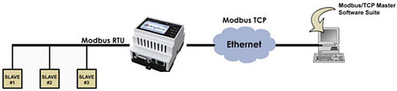 - Á Modbus TCP hliðinni tekur það að sér hlutverk netþjóns (þræls).