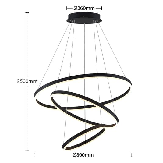 B-lager Arcchio Albiona LED hengiljós hengiljós lampi ljós svart 3 hringir