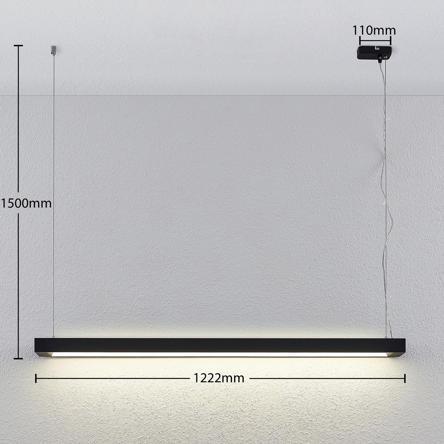 B-flokks Arcchio Cuna LED hengiljós, svart, ferkantað, 122 cm lampi, ljós, hengiljós