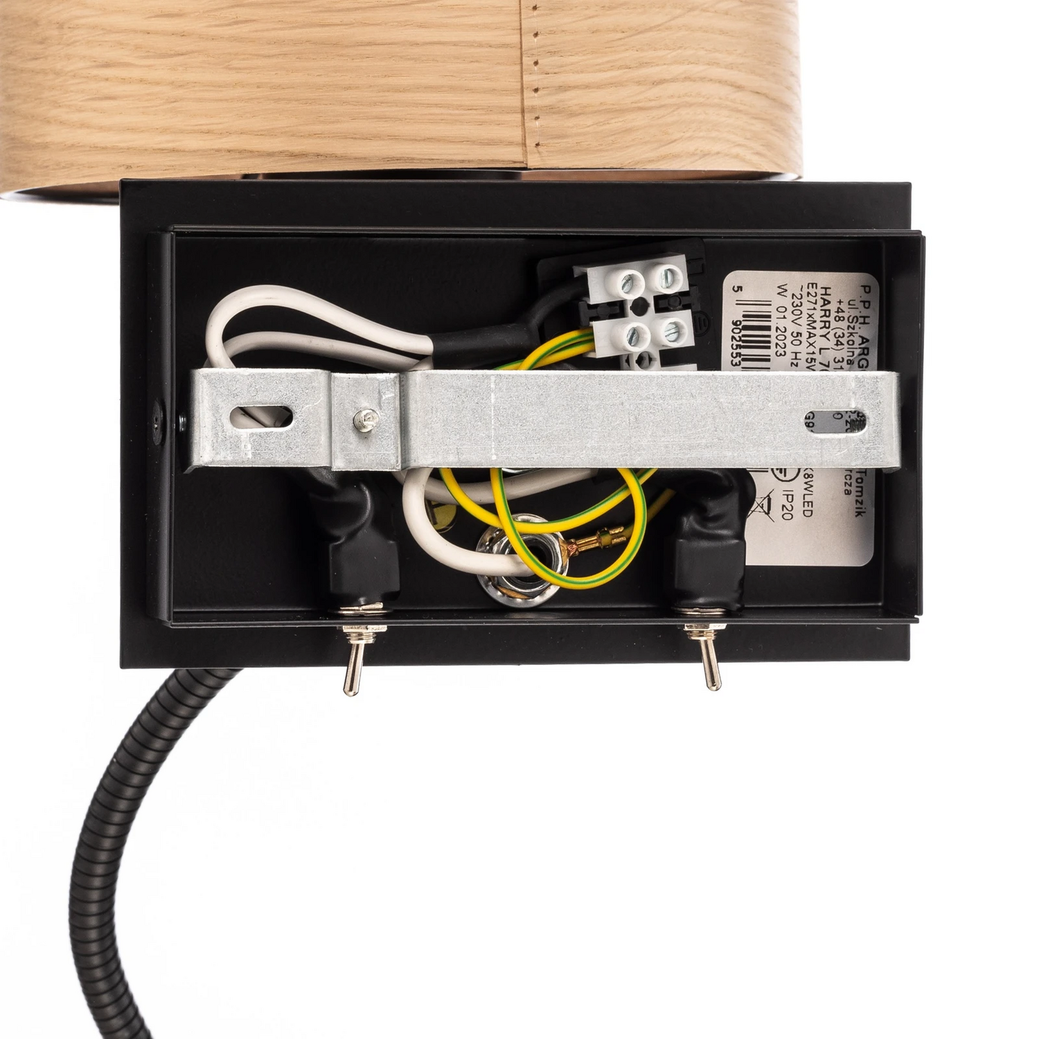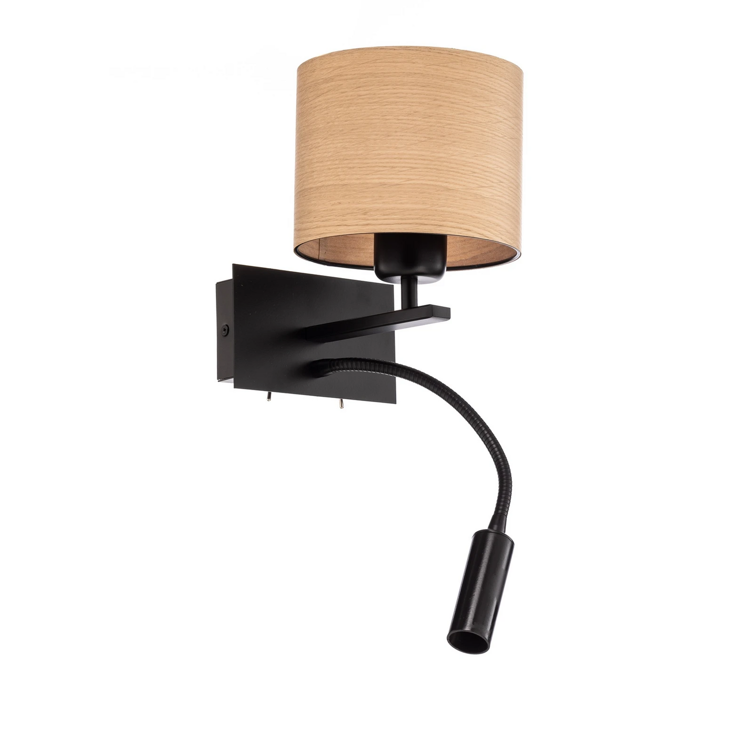 B-flokks Argon vegglampi Harry, kringlótt leslampa, svart/ljóst tré