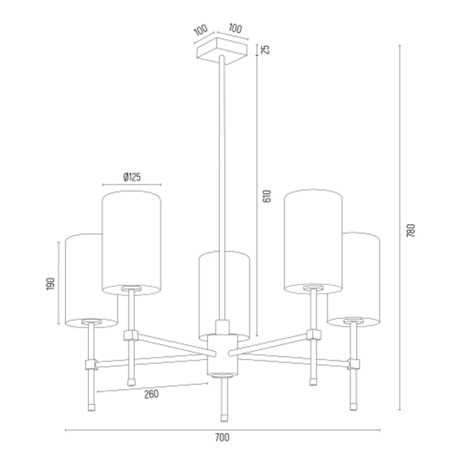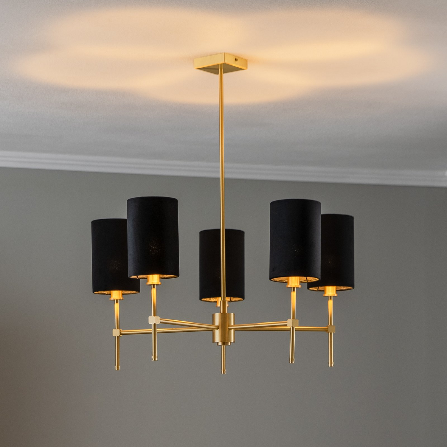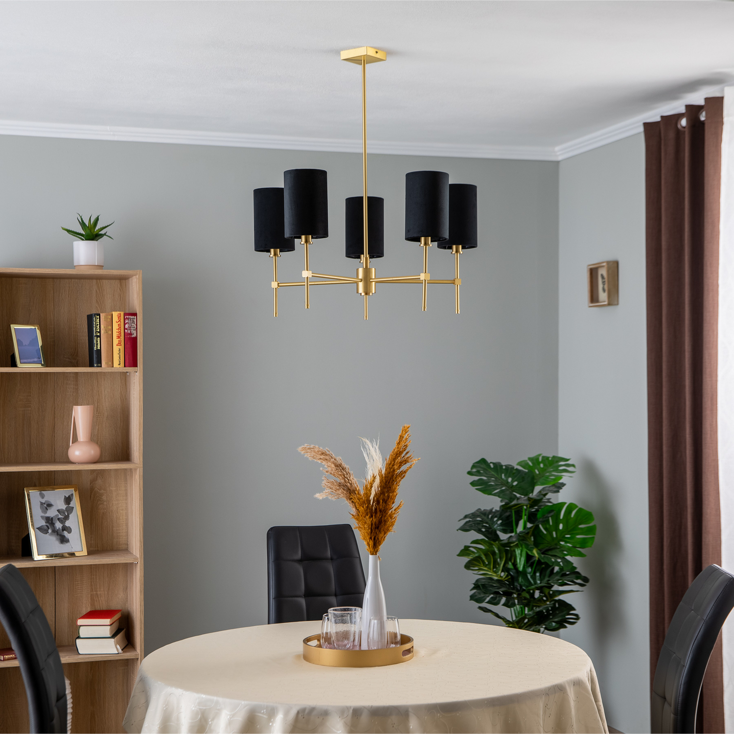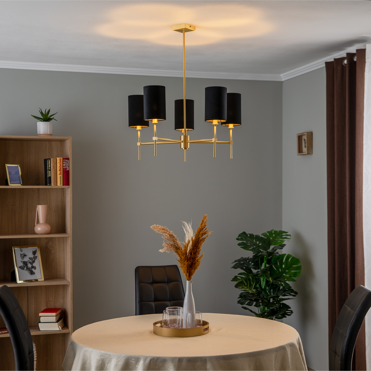 | Azzi ljósakróna með fimm ljósa svörtum textílskjá | Azzi ljósakróna með fimm ljósa svörtum textílskjá |