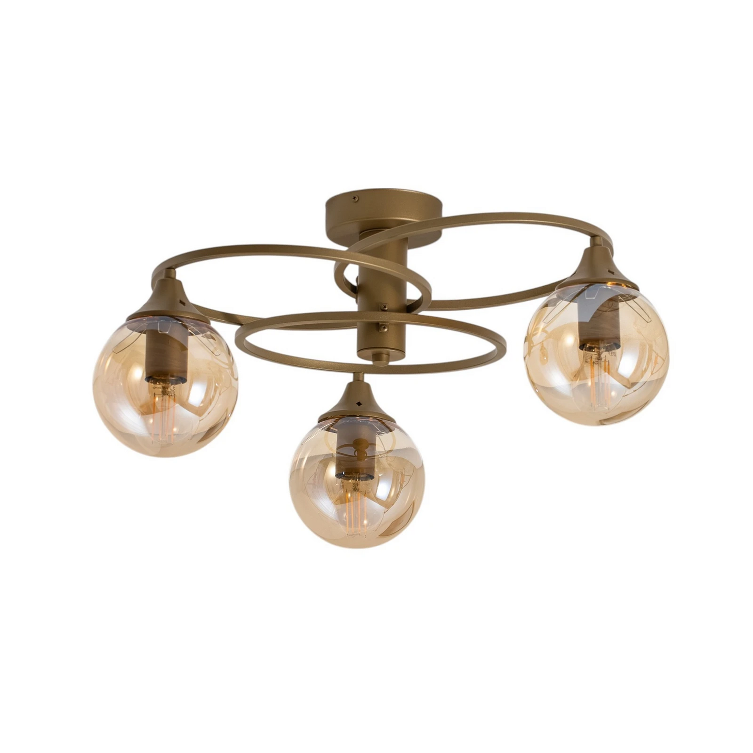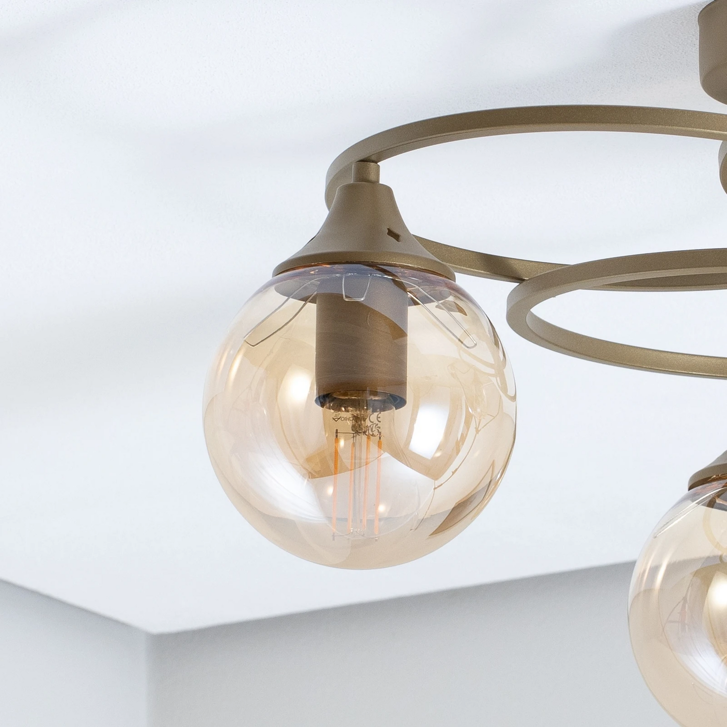 Binah loftlampi í B-flokki, gult/antíkgull, gler/málmur.