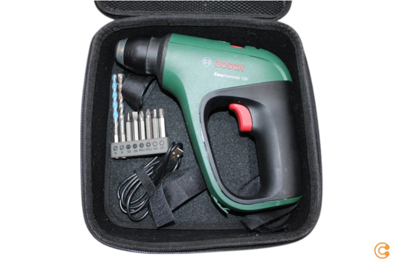Fjölhæfa EasyHammer 12 – nýi besti vinur allra DIY-áhugamanna. Ofurkrafturinn: Loftknúinn hamarbúnaður fyrir öfluga borun í steypu og múrsteini, sem og til að skrúfa og bora í tré og málm. Þökk sé 3-í-1 notkunarstillingarrofa er hægt að skipta fljótt og auðveldlega á milli vinnustillinga, en spennuhylkið gerir kleift að skipta um aukahluti á aðeins 3 sekúndum. Verkfærið er búið innbyggðri endurhlaðanlegri Li-ion rafhlöðu sem auðvelt er að hlaða með USB-C og er einnig með LED ljóshring fyrir 360° lýsingu á vinnusvæðinu. Ennfremur er EasyHammer 12 hluti af 12V POWER FOR ALL kerfinu. Þess vegna er rafhlaðan sem fylgir samhæf við öll verkfæri í græna Bosch Home & Garden 12V kerfinu.