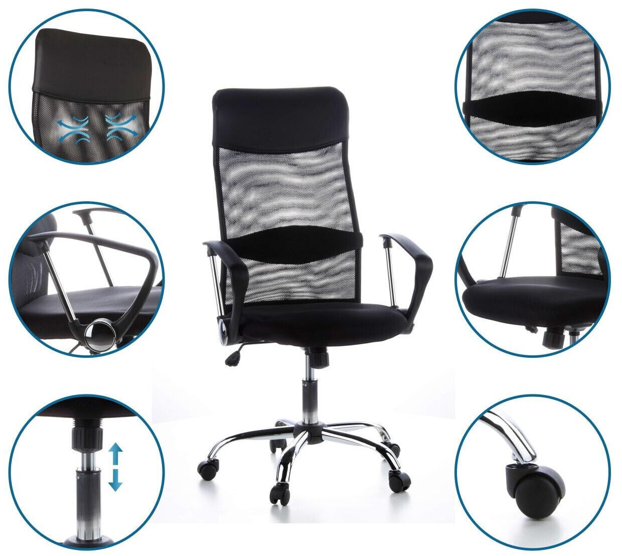 Skrifstofustóll í B-flokki, framkvæmdastjórnarstóll, skrifborðsstóll, Aria High, möskvaefni, gervileður, svartur