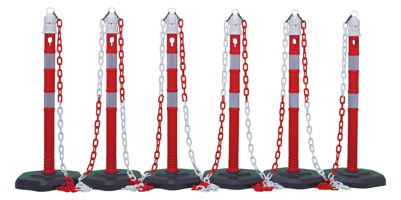 Keðjustandskerfi frá Cimco, B-flokks, úr plasti, 4 staurar, 4 keðjur, rauð, hvít, svört