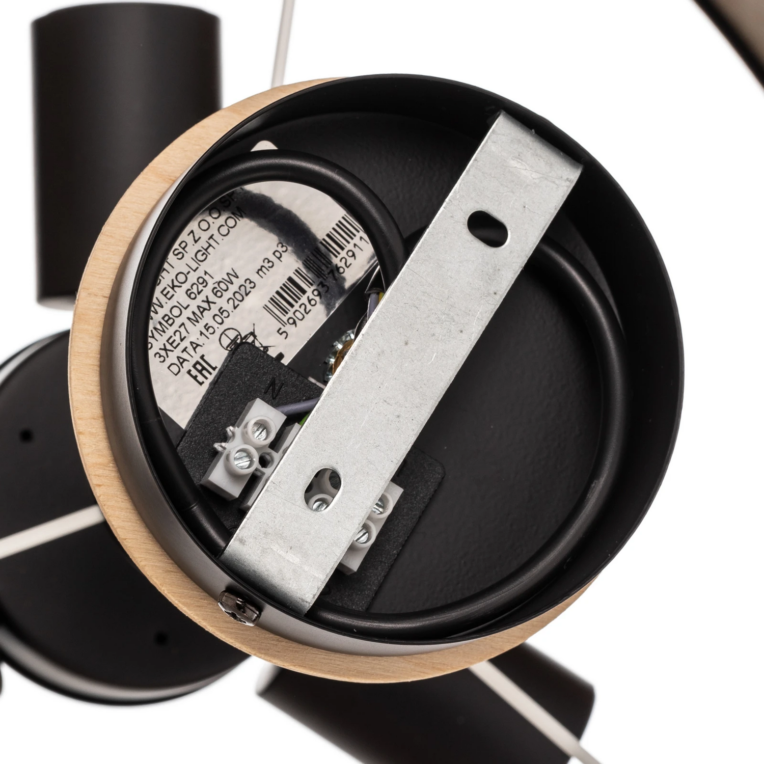 Loftljós Terra úr tré og efni, svart, í B-flokki. Loftlampi, ljós, kastari.