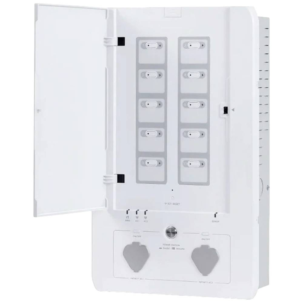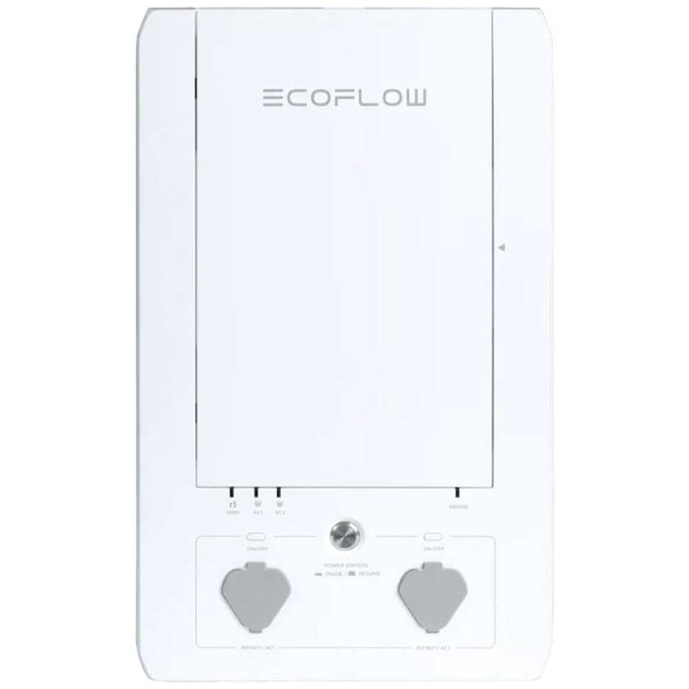 ECOFLOW snjallheimilisskjár með hvítu tengiboxi fyrir rafmagnsstöð, hleðslutæki