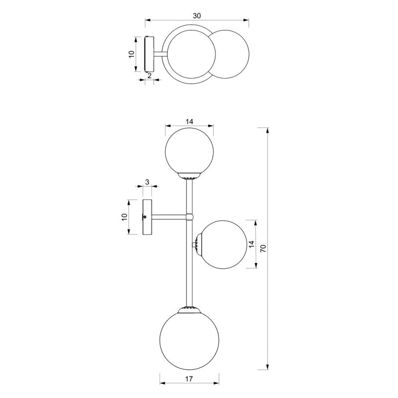 B-lager Eko Light nútímaleg veggljós Pop vegglampi Veggljós 3 glerkúlur 3x E14 Mlp7844