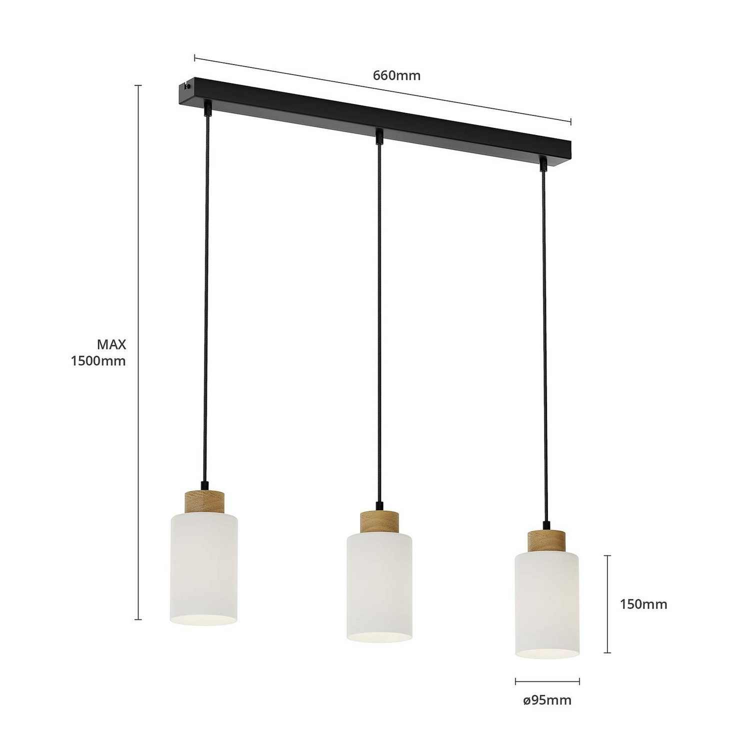 B-lager Envostar Talia hengiljós 3 fl E27 Linea eik hvít svört