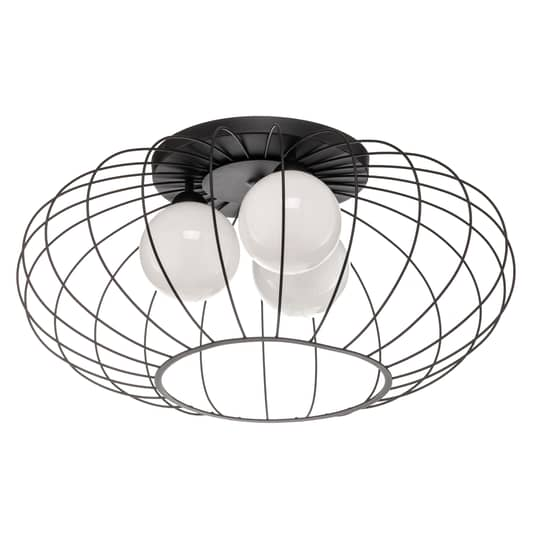 B-flokks Euluna Kronos loftlampi, búr, svartur, þrír ópalkúlur, skrautlegur loftlampi, E14