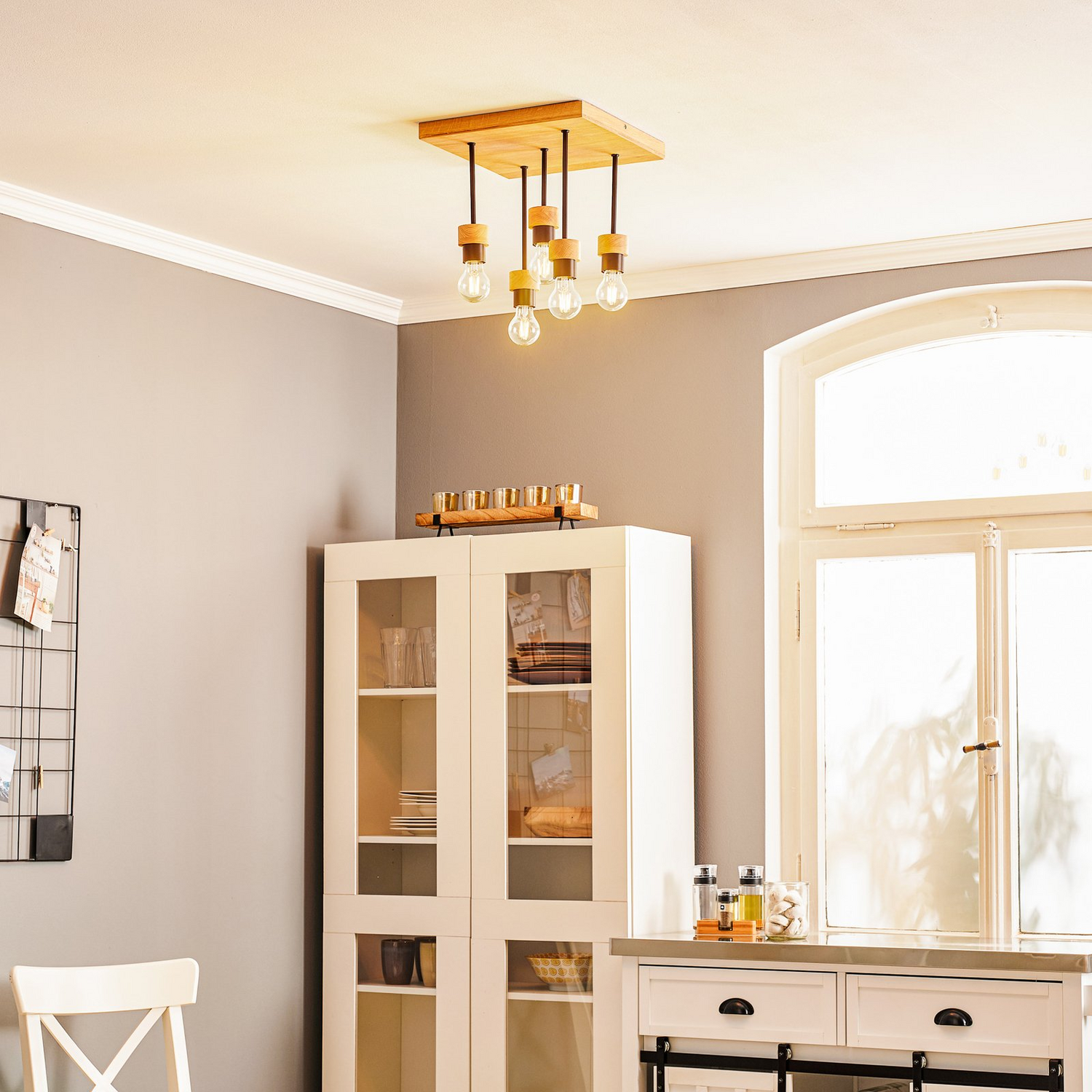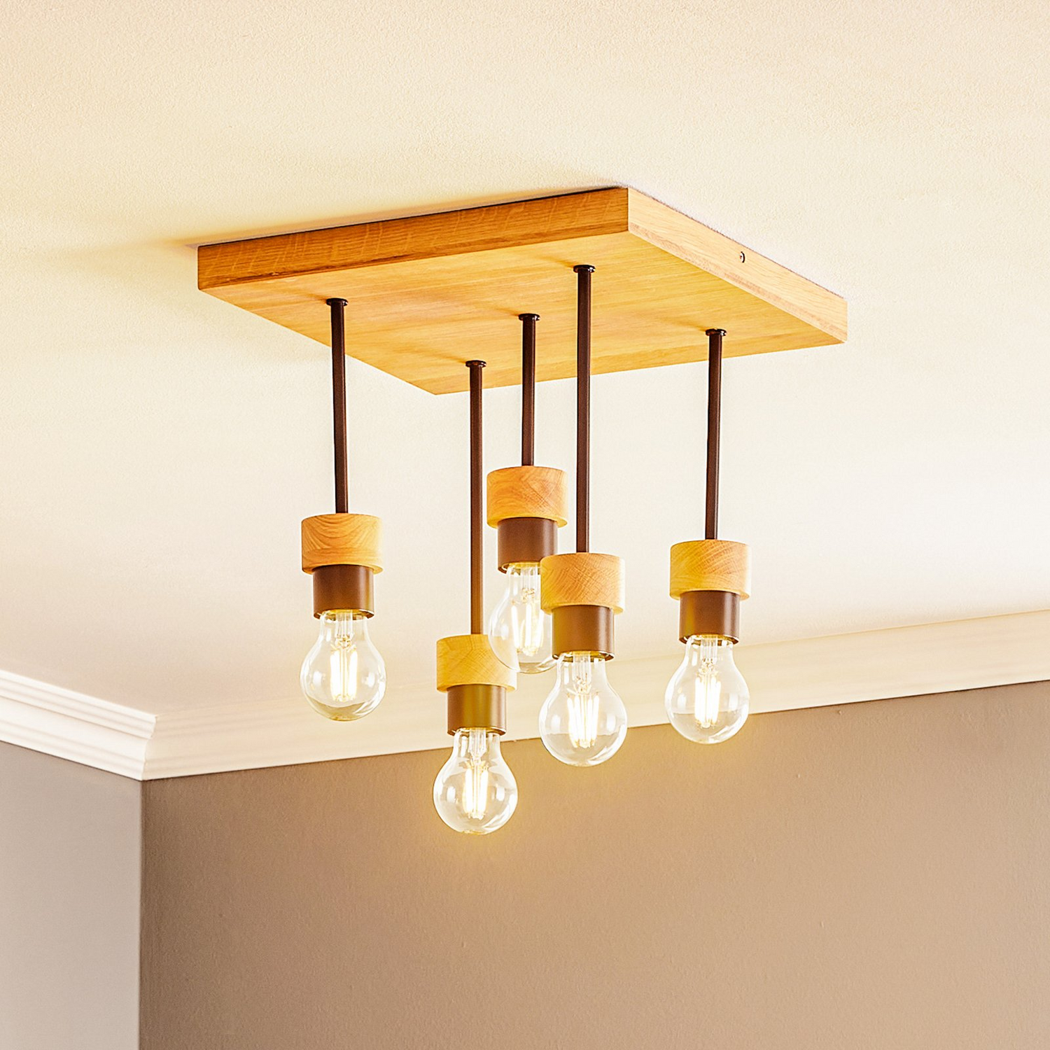 B-flokks Euluna loftlampi Millume eikarviður ferkantaður 5 ljósa skrautlegur loftlampi E27