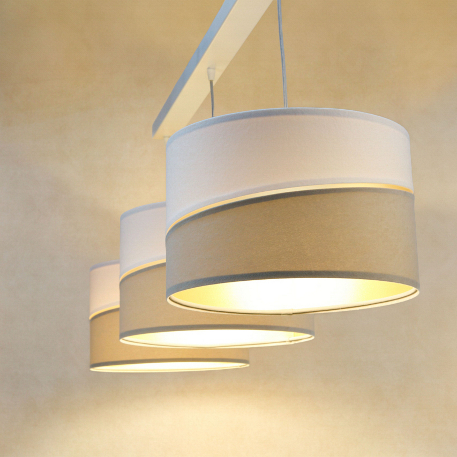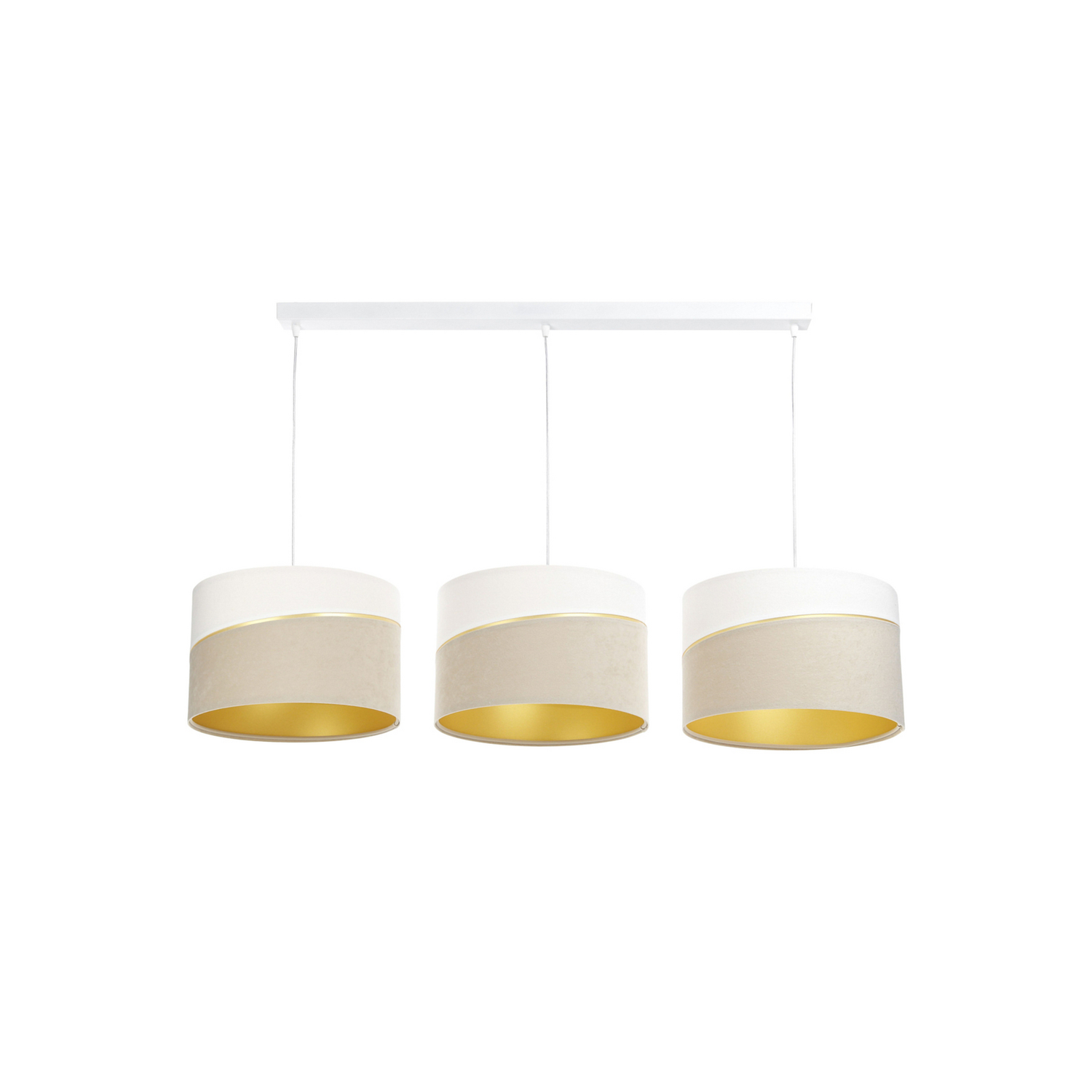 B-flokks Euluna hengiljós, þriggja ljósastaura lampi, hvítur, beige, gullinn.