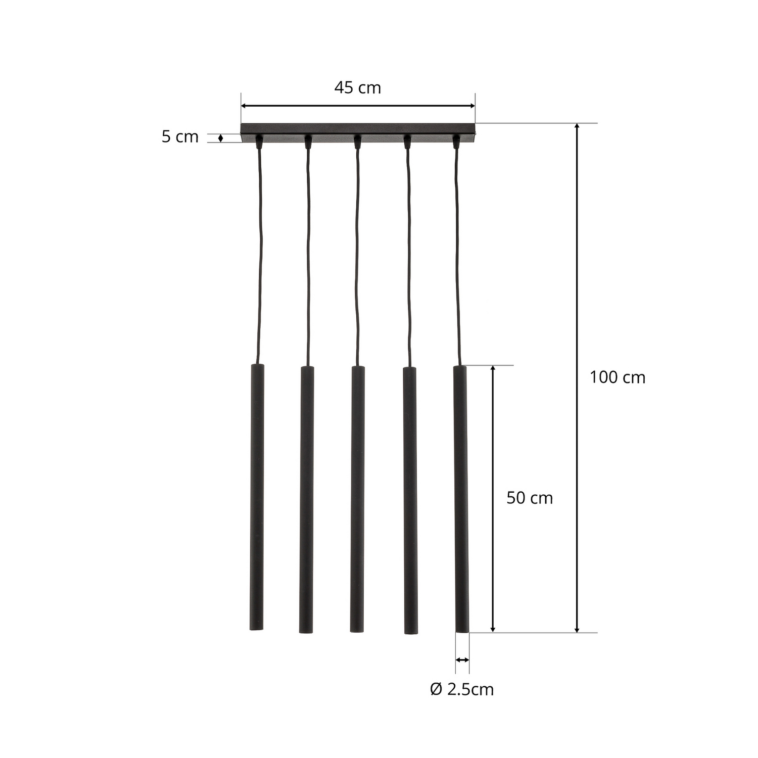 Euluna hengilampi á lager Þunn hengilampi í lofti, svart, fimm perur Lin941