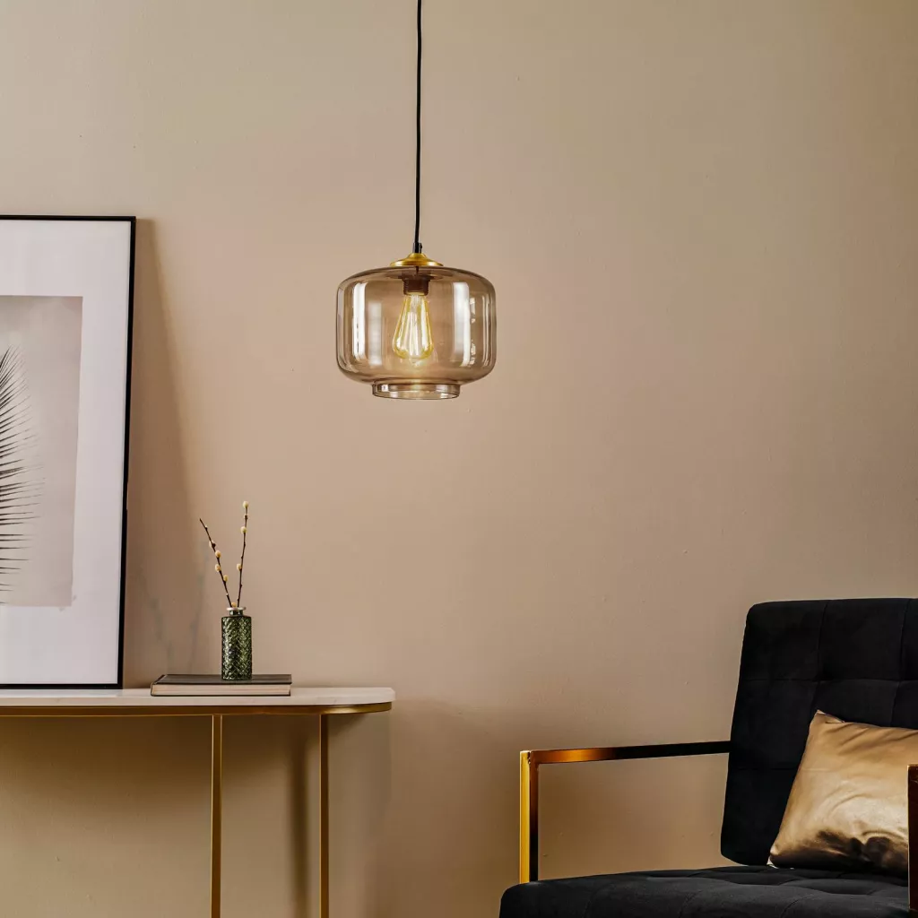 B-flokks Euluna Tube hengiljós, ø25 cm með glerskjá, reykgrátt, E27