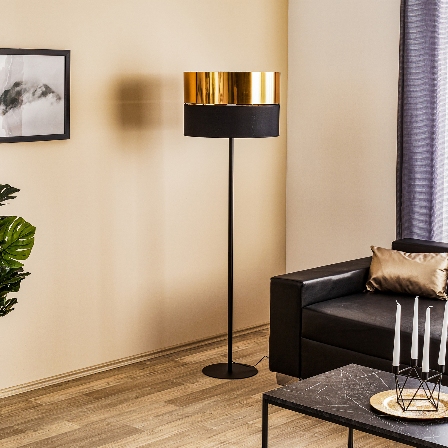 B-flokks Euluna Hilton gólflampi, svart/gull, gólflampi, ljósastæði, E27, 60 W, IP20765