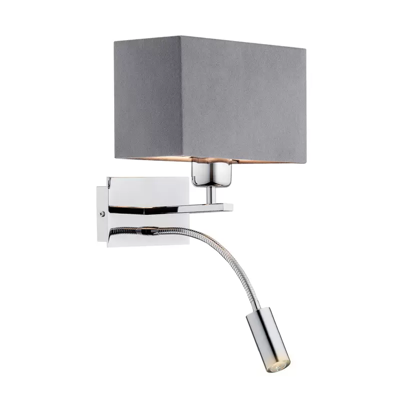 Harry vegglampi, ferkantaður, króm/króm/dökkgrár