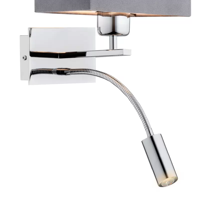 B-flokks Euluna vegglampi Harry, ferkantaður, krómaður, dökkgrár, veggljós, lampi, ljós E27 G9