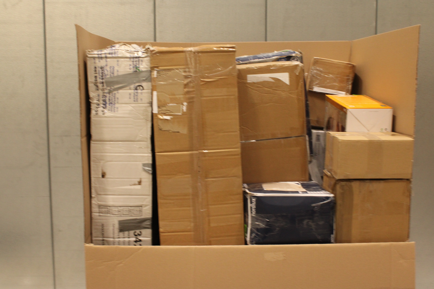 B-flokks blandaðar vörur til baka, pakka af heimilislömpum, rafeindatækjum, 29x