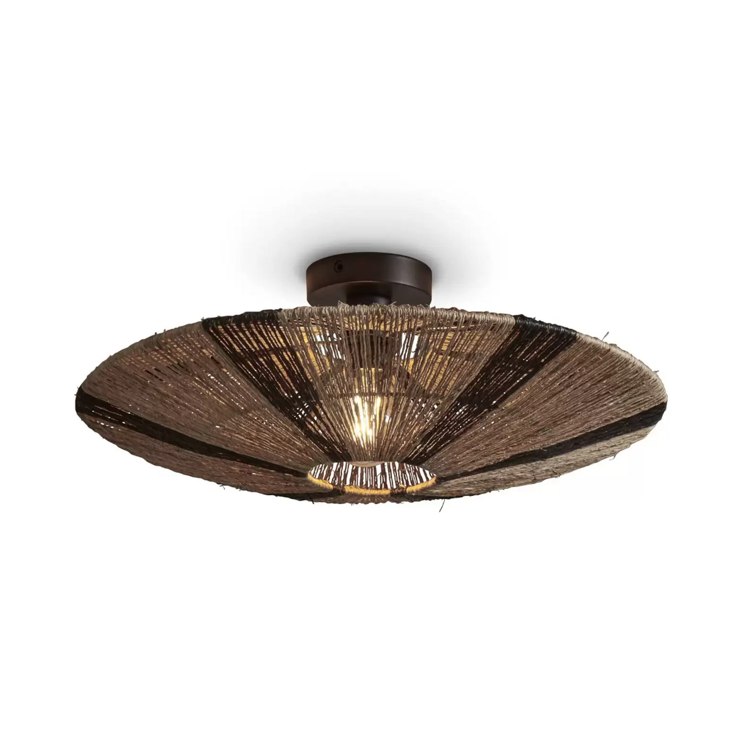 Með jútuskjánum sínum er Iguazu loftljósið fallegt augnafang og færir hvaða stofu sem er skemmtilega náttúrulega blæ. Svarta járnkápan skapar nútímalegt útlit sem fellur vel að fjölbreyttum innanhússhönnunarstílum. E27 festingin gerir kleift að nota mismunandi ljósaperur, sem gerir þér kleift að stilla birtuna að þínum smekk. Iguazu er tilvalið til að lýsa upp stofur, borðstofur, svefnherbergi og gang.