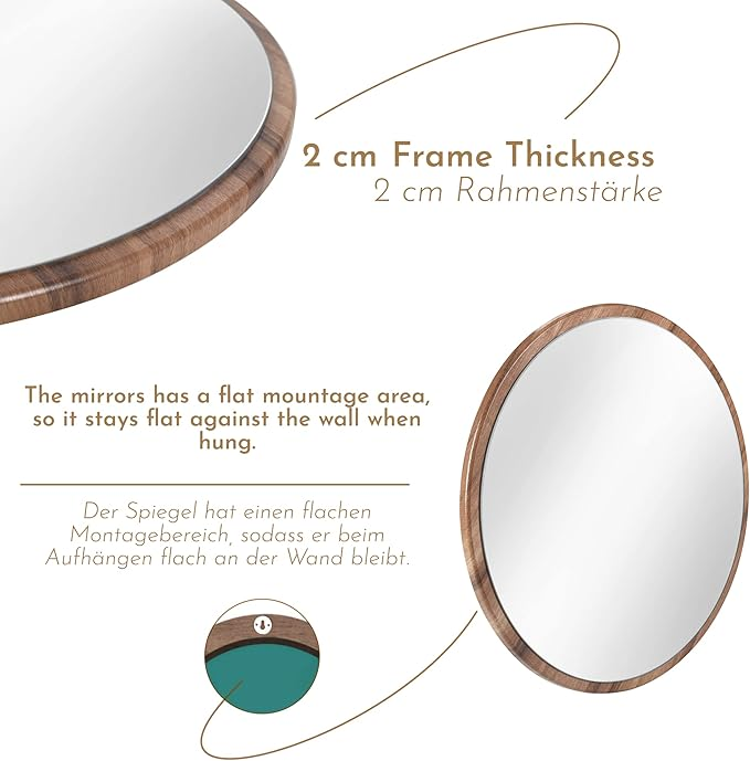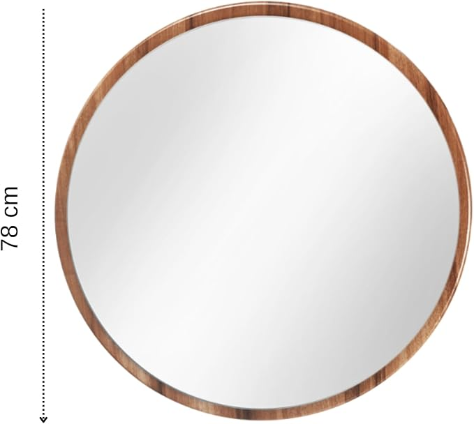 B-flokks Gozos Obejo veggspegill, kringlóttur tréspegill, 78x78x3 cm, nútímalegur