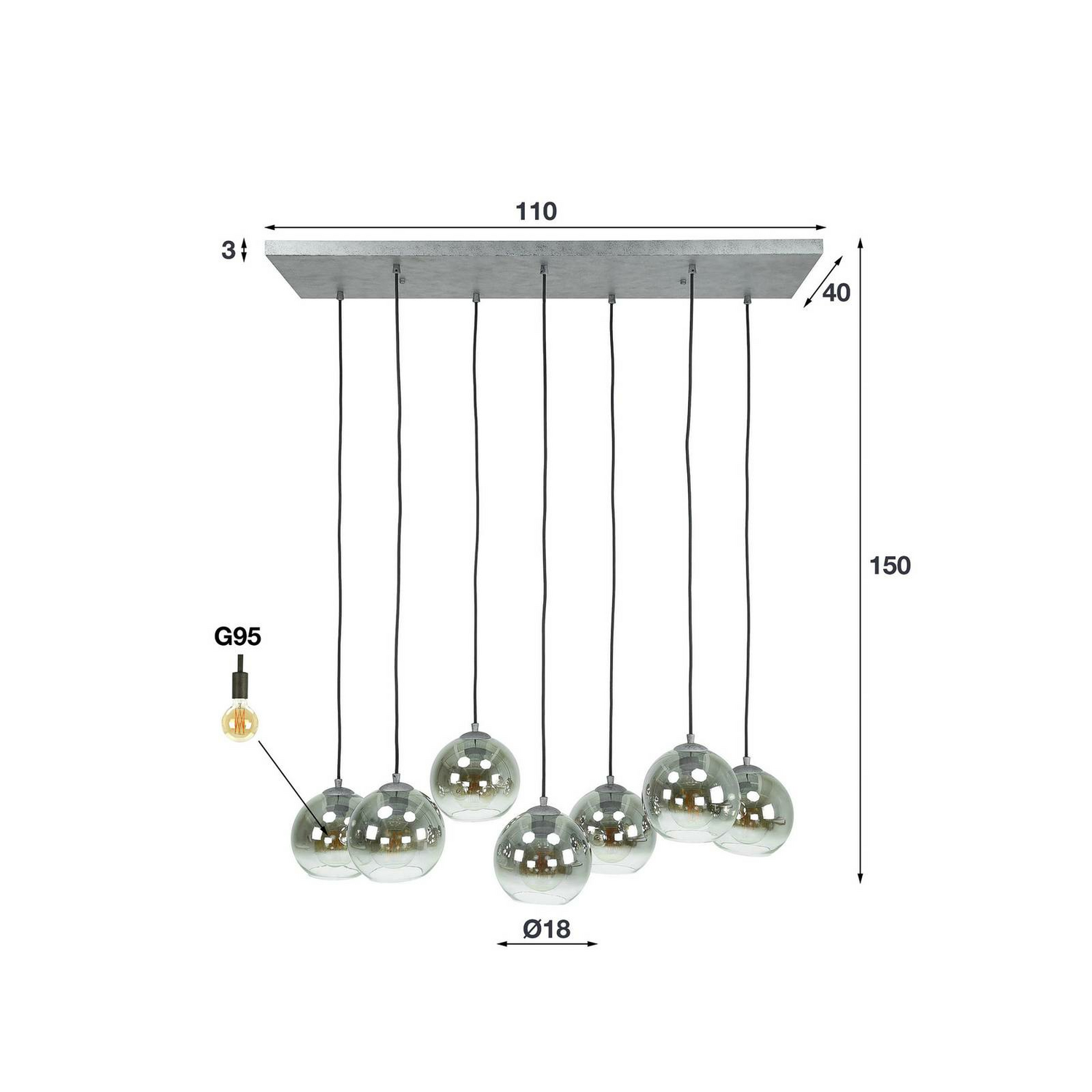B-flokks Alessandra hengilampi, loftlampi, glerskjáir, sjö ljós