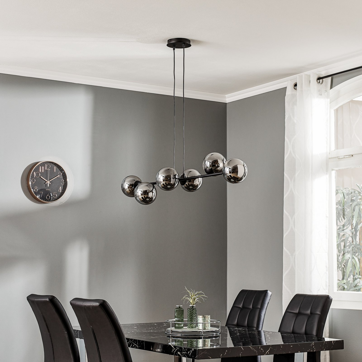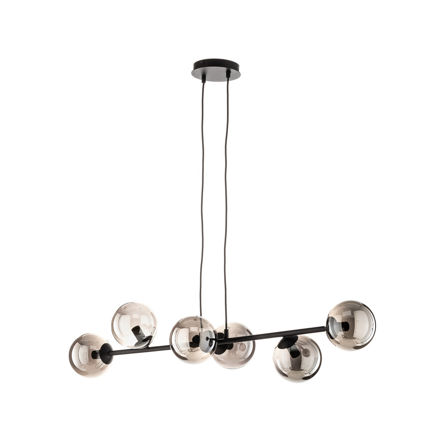 B-flokks Glassy hengiljós, 6 ljós, svart grafítgler, 110 cm loftlampi, kastari